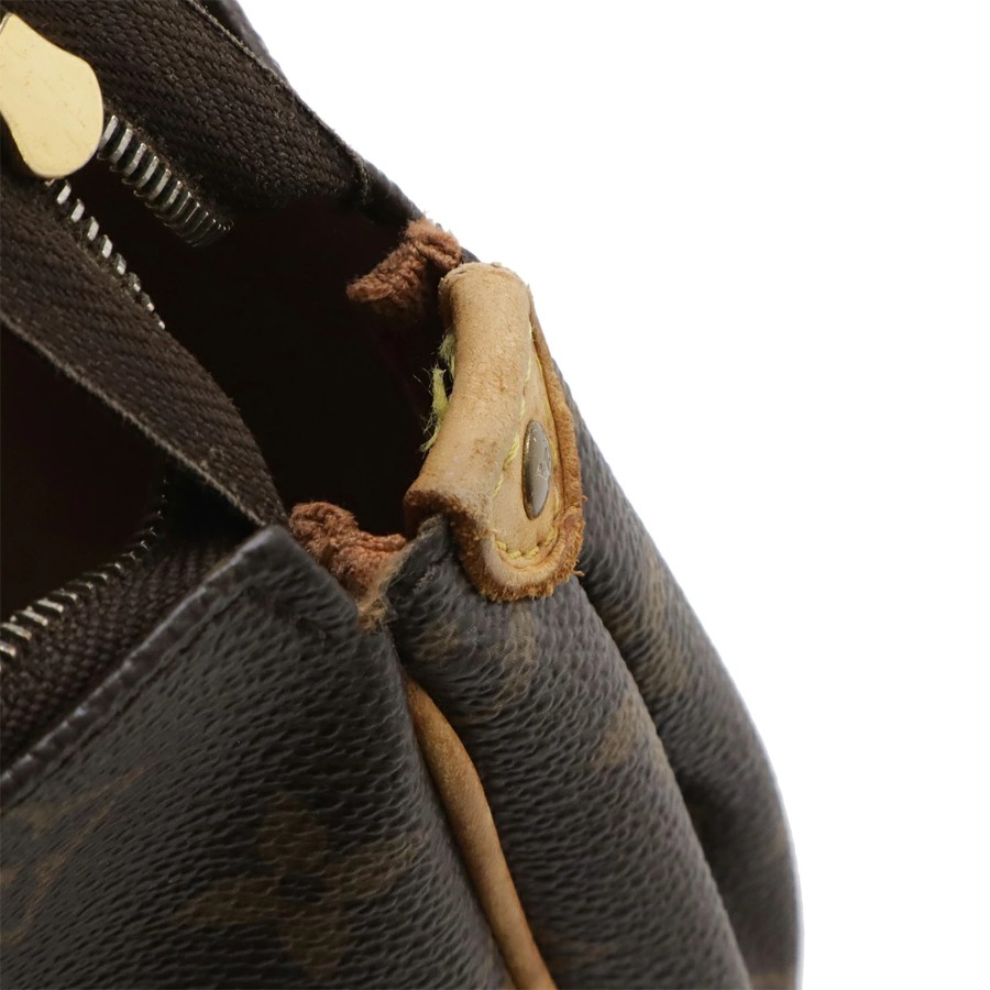 中央つぶれ、白ボケ、ヌメ革シミ、スレ、間口端切れ、ファスナーテープ端ホツレ