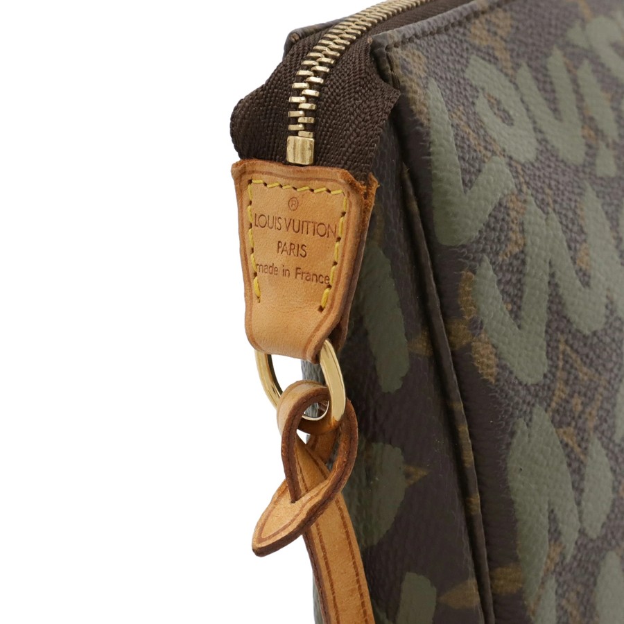 モノグラム地にルイ・ヴィトンのロゴがペイントされた、とても目を引くオシャレなデザインのアクセサリーポーチでございます。