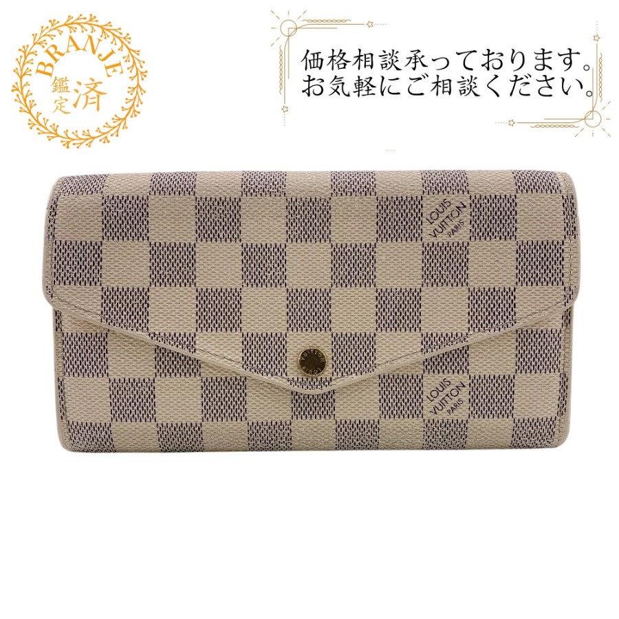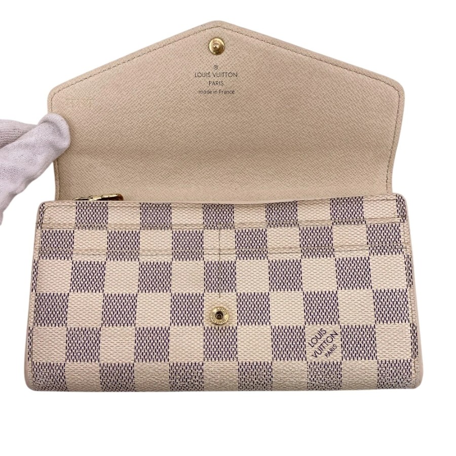 LOUIS VUITTON Louis Vuitton N63208 Portefeuille Sarah Damier Azur Long Wallet Wallet Brand Card Holder Coin Purse White