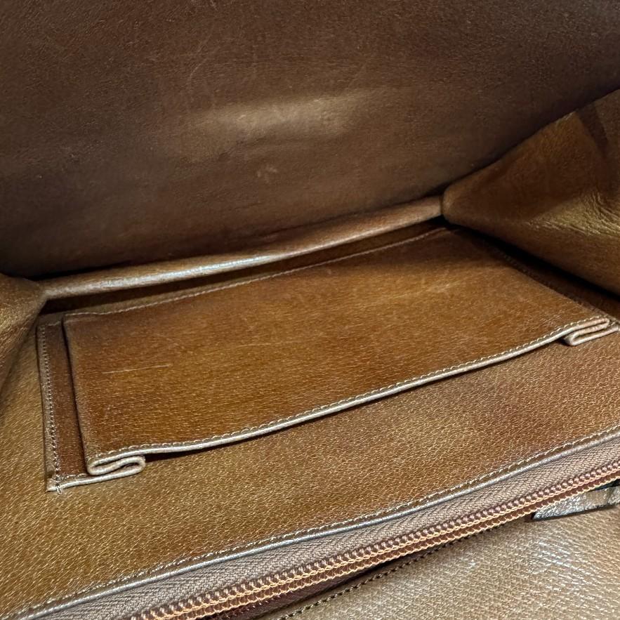 | 状態 | 【外・表面】小キズ、スレ、汚れ、反り 【外・ハンドル-ストラップ】スレ、キズ、破れ、汚れ、コバ割れ 【外・コーナー】小キズ、スレ、汚れ 【内側】スレ、キズ、汚れ、黒ずみ、変色、シミ 【ファスナー部分】小キズ、スレ、剥げ、汚れ 【におい】古い匂い 【金具部分】小キズ、スレ、汚れ、くすみ ストラップ、レザー千切れかけ.接着剤のようなもので付け跡有り  |
