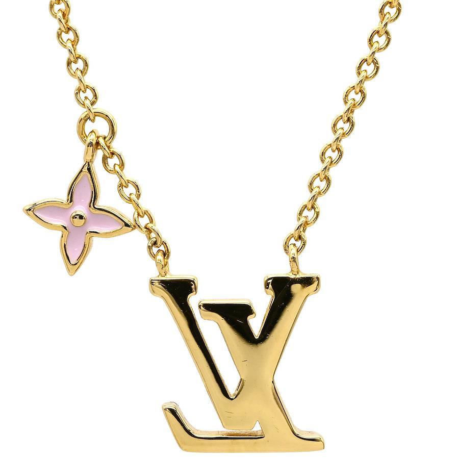 Louis Vuitton Iconic Necklace, Pink and Gold, M01215, LV Initial Monogram Flower, BY1215