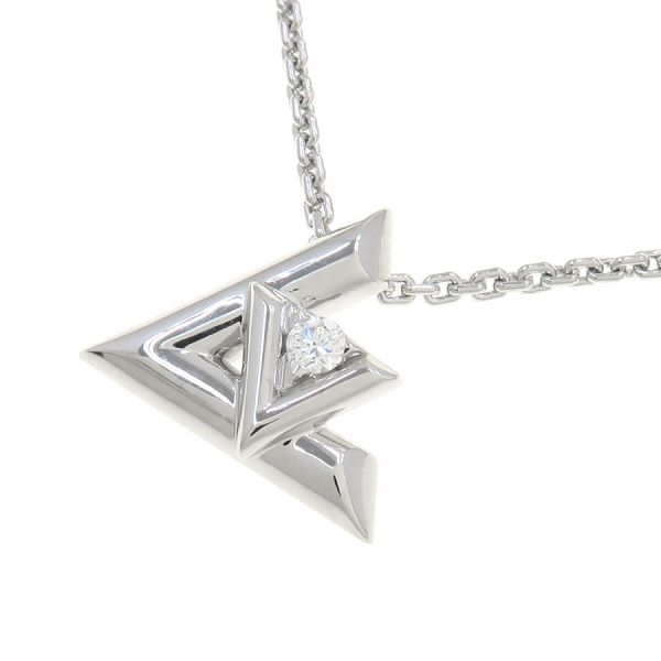 ルイヴィトンより、LVヴォルトワンダイヤネックレス/GMのご紹介です☆アイコニックなシグネチャーにオマージュを捧げるデザインをホワイトゴールドで仕立てた「LV ヴォルト コレクション」の『ペンダント LV ヴォルト ワン GM』♪小ぶりの「V」とやや大きめの「L」を組み合わせ、「V」モチーフにはブリリアントカットのダイヤモンドが存在感を放つネックレスとなっております◎トップ裏の刻印周りや、チェーンの引き輪の刻印周りなど、仕上げ(磨き)ができない部分に小キズが残っているためBランクとなっておりますが、その分お値段もお買い得となっております♪人気アイテムですので、気になった方は是非この機会をお見逃しなく☆