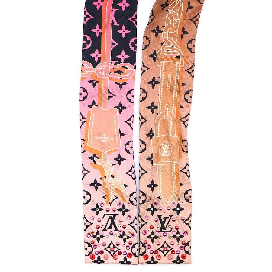 [モデル]モノグラム バンドーBB ラインストーン スカーフ ピンク シルク M76118