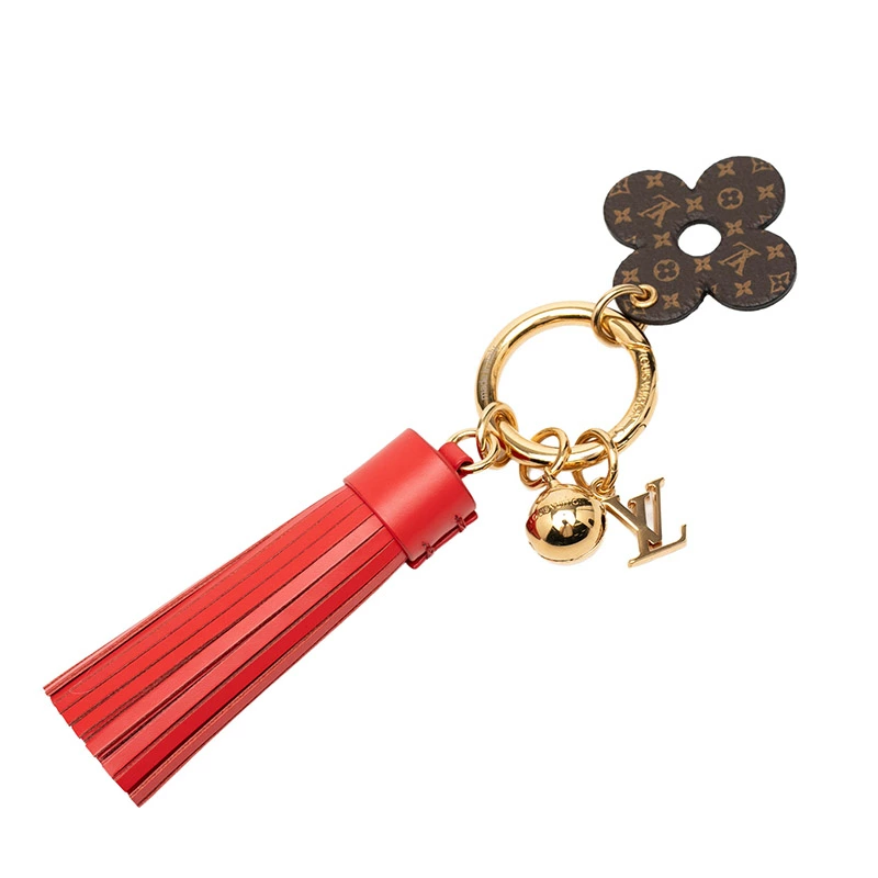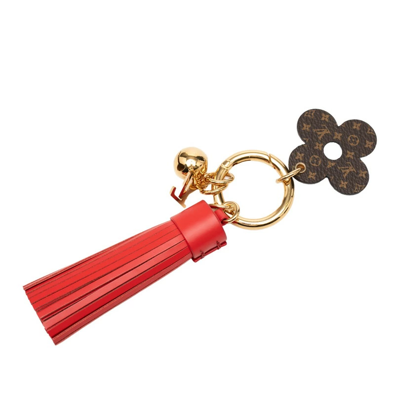 - ルイ ヴィトン モノグラム タッセル バッグチャーム キーホルダー M63087 レッド ブラウン レザー メッキ レディース LOUIS VUITTON 【中古】