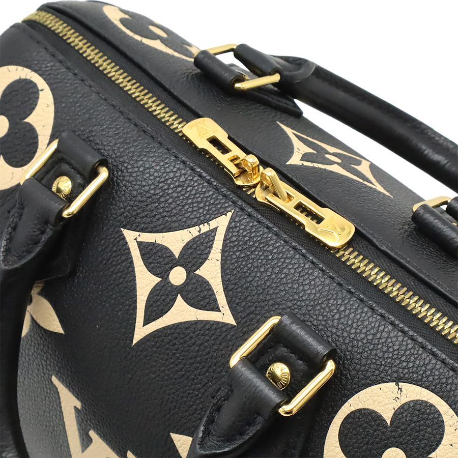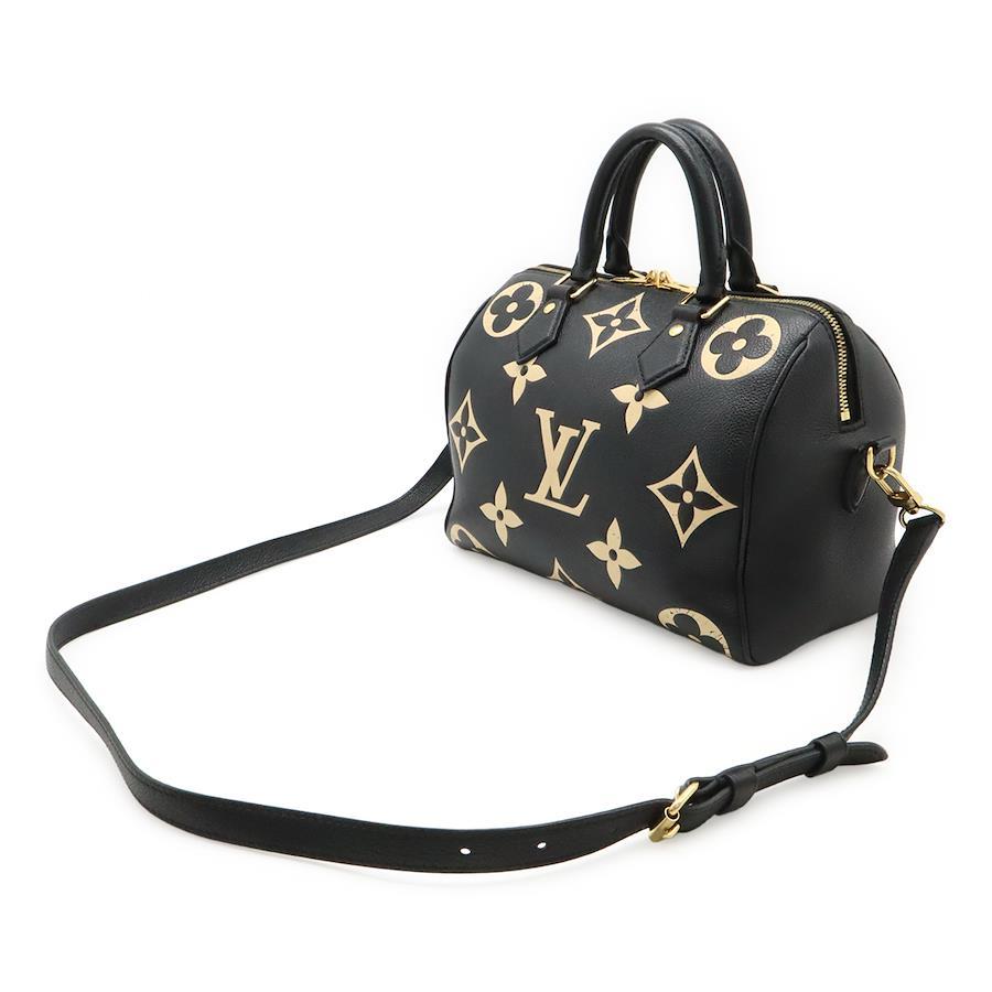 【コメント】使用感がございますが、まだまだご愛用頂けるお品物でございます。ブラックのモノグラム・アンプラント レザーにベージュのモノグラム・ジャイアント パターンを施し、コンパクトなサイズに仕上げた「スピーディ・バンドリエール 25」。メゾンが1930年に発表したバッグ「エクスプレス」から着想を得た、洗練された雰囲気のバッグです。ゴールドカラーのメタルパーツと内装にあしらわれたレッドのライニングが特徴のデザイン。取外し & 調節可能なストラップとトップハンドルでさまざまな持ち方が楽しめます。