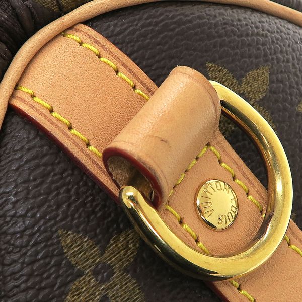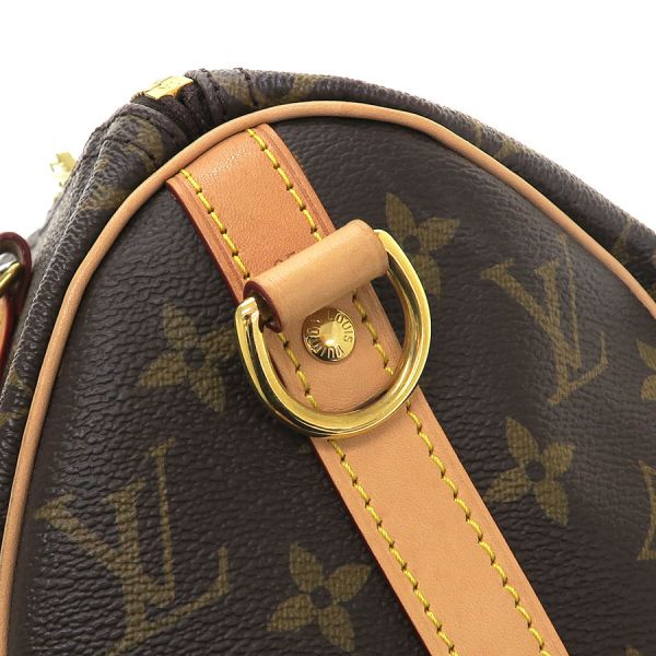 ルイ・ヴィトンならではのモノグラム・キャンバスで仕上げた「スピーディ・バンドリエール 25」のご紹介です。 日常生活にぴったりのシティバッグです。 「スピーディ」の前身であるバッグ「エクスプレス」は、1930年代の旅人のために作られたもの。 その名は加速化が著しかった当時の移動手段にヒントを得ています。 一目でそれと分かる独特のシルエット、ロール仕上げのレザーハンドル、刻印を施したパドロック、取外し可能なストラップなど、すべてのディテールが「スピーディ」を特別な存在にしています。状態はAランクのお品で、本体の型崩れ、キャンバスの光沢感、ヌメ革部の色焼け・擦れ・雨染み、ハンドル部やサイドのヌメ革部に雨染み・黒ずみ、角部に擦れ、金具部に小傷・くすみ、内装部に擦れ感、内ポケット中汚れ、保管臭が見受けられます。 致命的なダメージは抑えられており、まだまだご活躍のコンディションですよ。 いかがでしょうか?