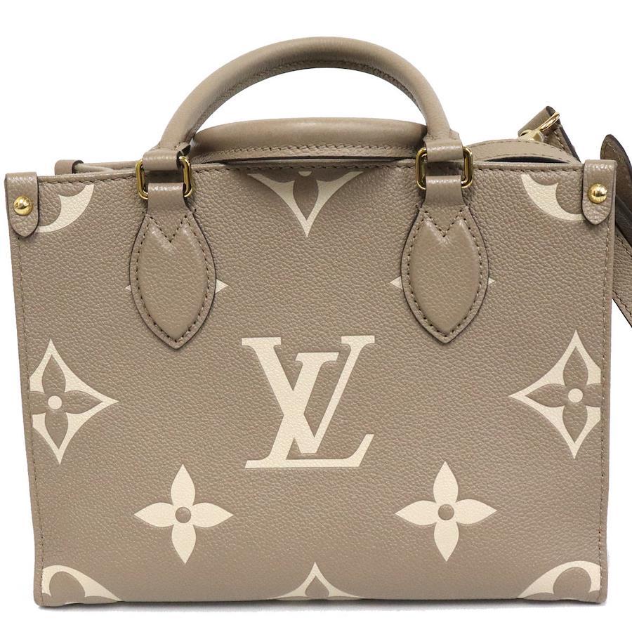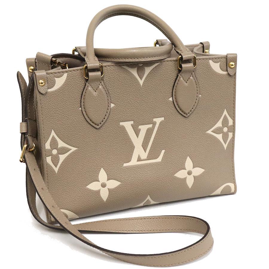 ルイヴィトンのバイカラー モノグラム アンプラントのハンドバッグ、オンザゴーPM(M45779)の中古品です。ストラップ付きなので、ショルダーバッグとしても使用できます。わずかに角スレがあります。金具にわずかに小傷があります。全体的に使用感が少なく、程度の良いお品物です。NFC ICチップが内蔵されています。+---+---+---+---+---+。{状態}外側A内側A{素材}モノグラム アンプラント/レザー{サイズ}約W25cm × H19cm × D11.5cm。{その他}ファスナー式内ポケット×1内ポケット×2。{付属品}なし{お問合せ商品番号}25106074+---+---+---+---+---+。