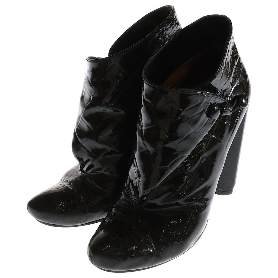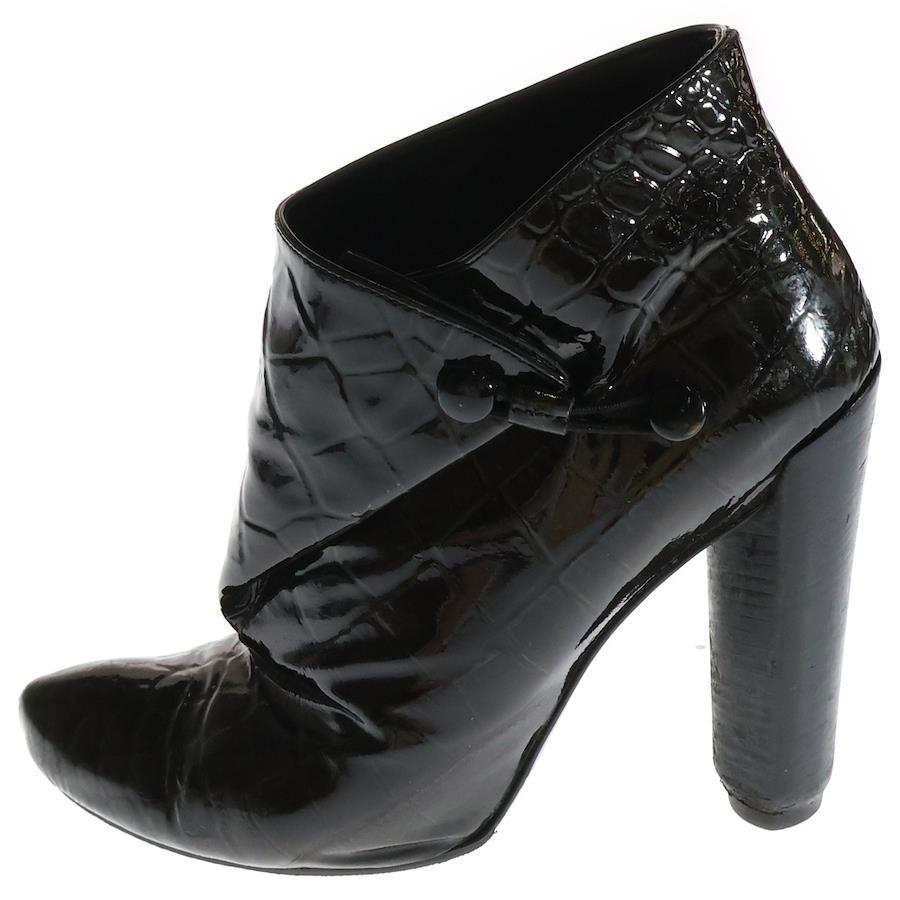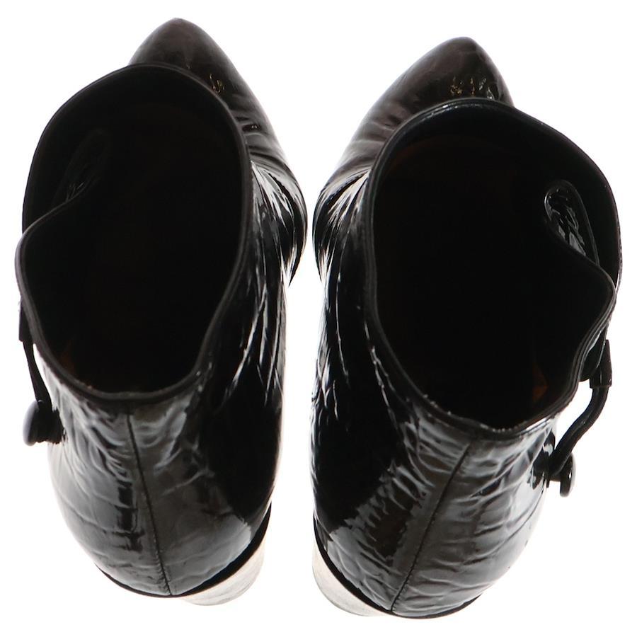 [モデル]パテントレザー ヒール ショートブーツ シューズ ブラック レディース