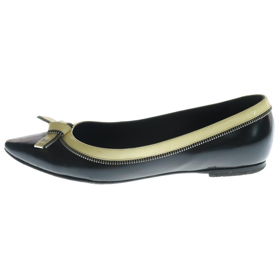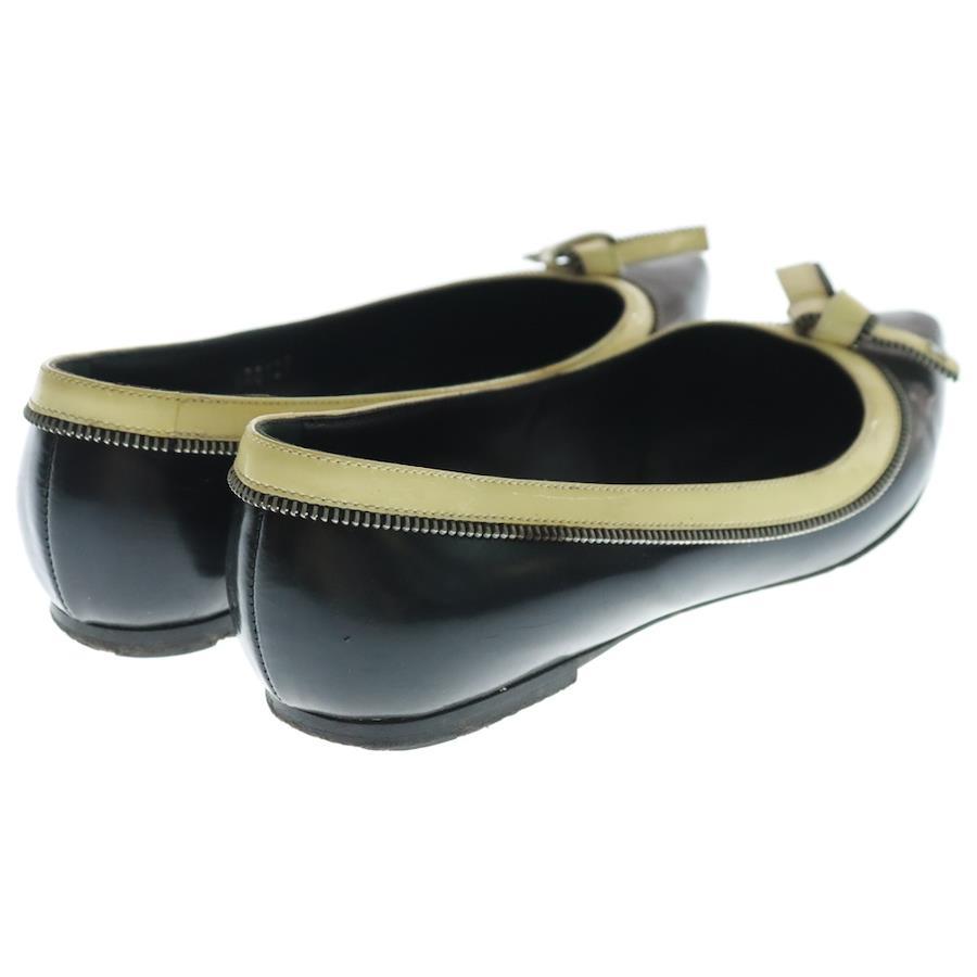 [モデル]ポインテッドトゥ ロゴリボン 装飾 レザー フラット パンプス ブラック BR0125 レディース
