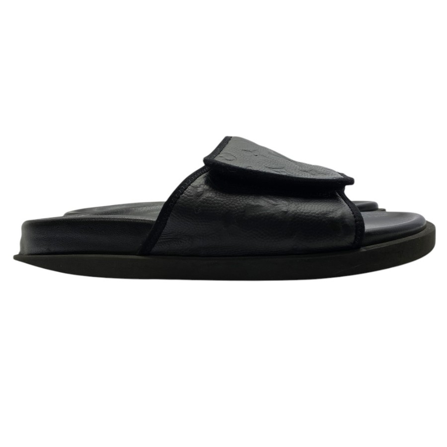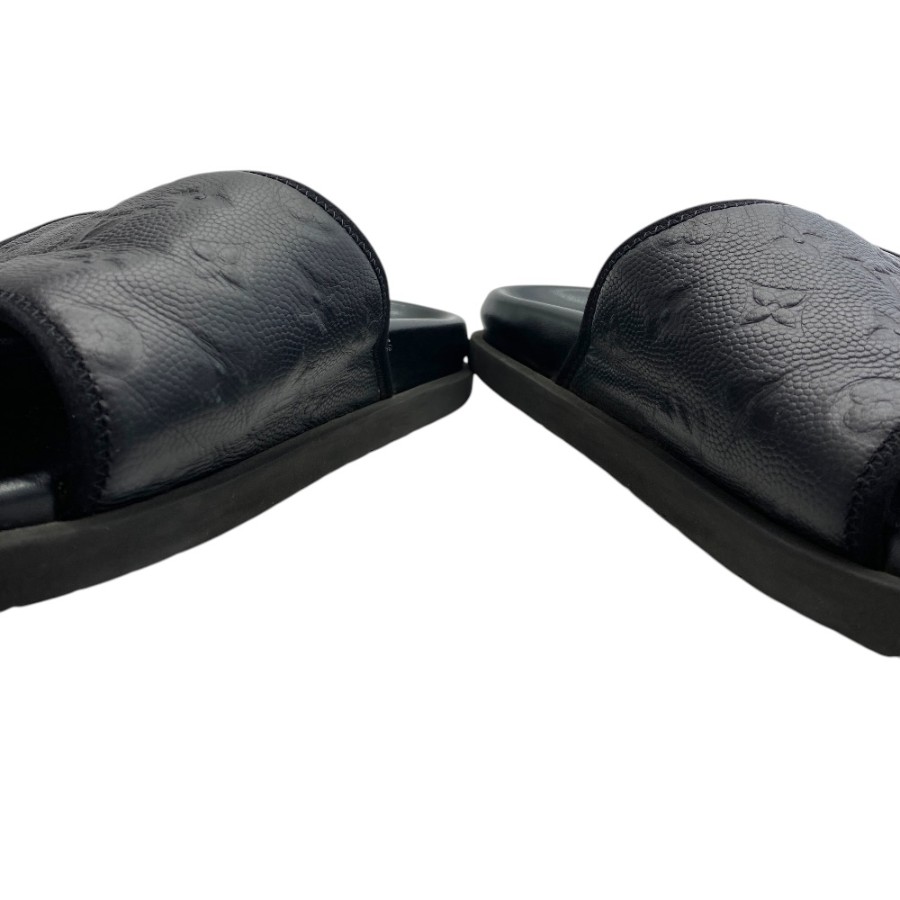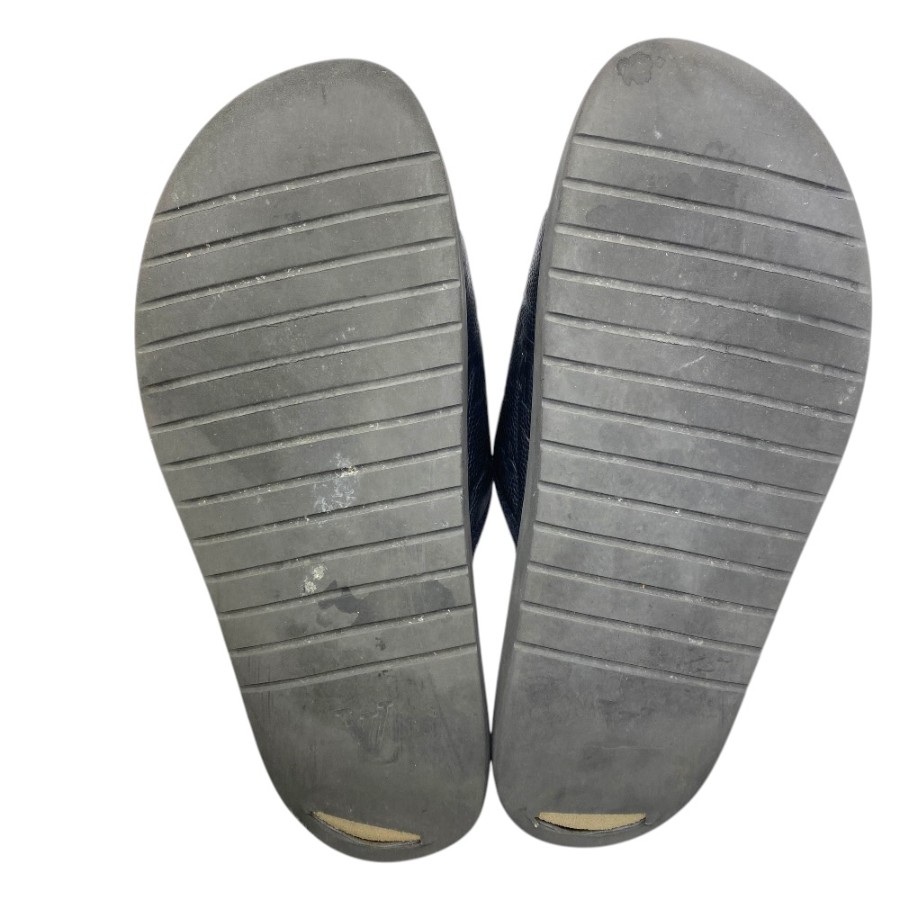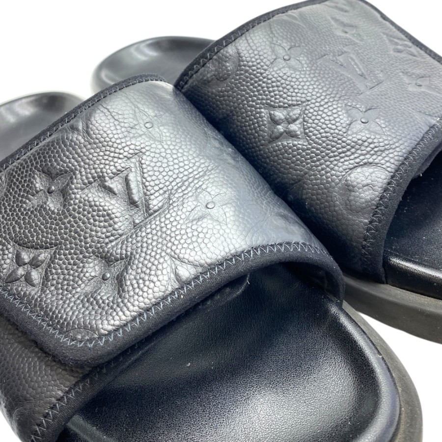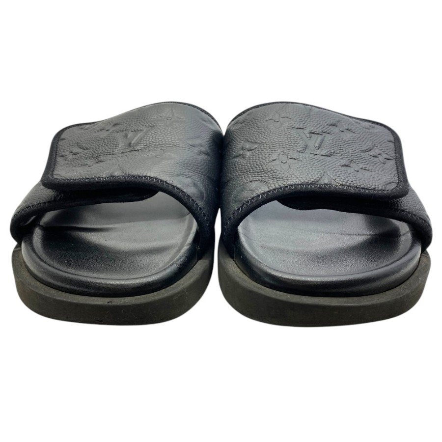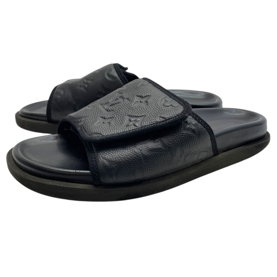【ブランド】LOUIS VUITTON ルイヴィトン【商品名】NBAコラボ マイアミ・ライン ミュール サンダル【商品番号】-【カラー】ブラック【サイズ】アウトソール:約29cm アッパー::約11.5cm 表記サイズ: 7(約26cm)【素材】レザー【付属品】-【ランク】C(使用感大)【コメント】外面:スレ/キズ/ソールかかと削れ使用感有(写真参照) 中面:剥がれ/スレ/薄汚れ(写真参照)【管理番号】0421c1980o商品情報