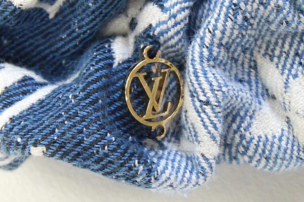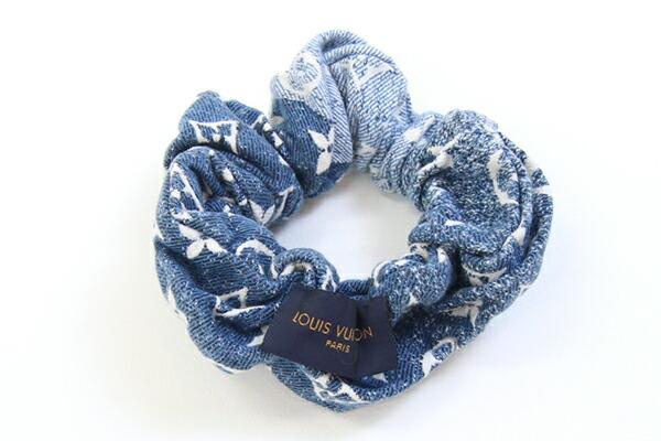 ルイヴィトンシュシュM77439ブルーコットン100%中古ヘアアクセサリー髪留めモノグラムデニムLVロゴレディースLOUISVUITTON