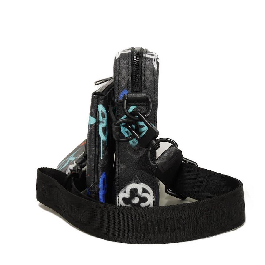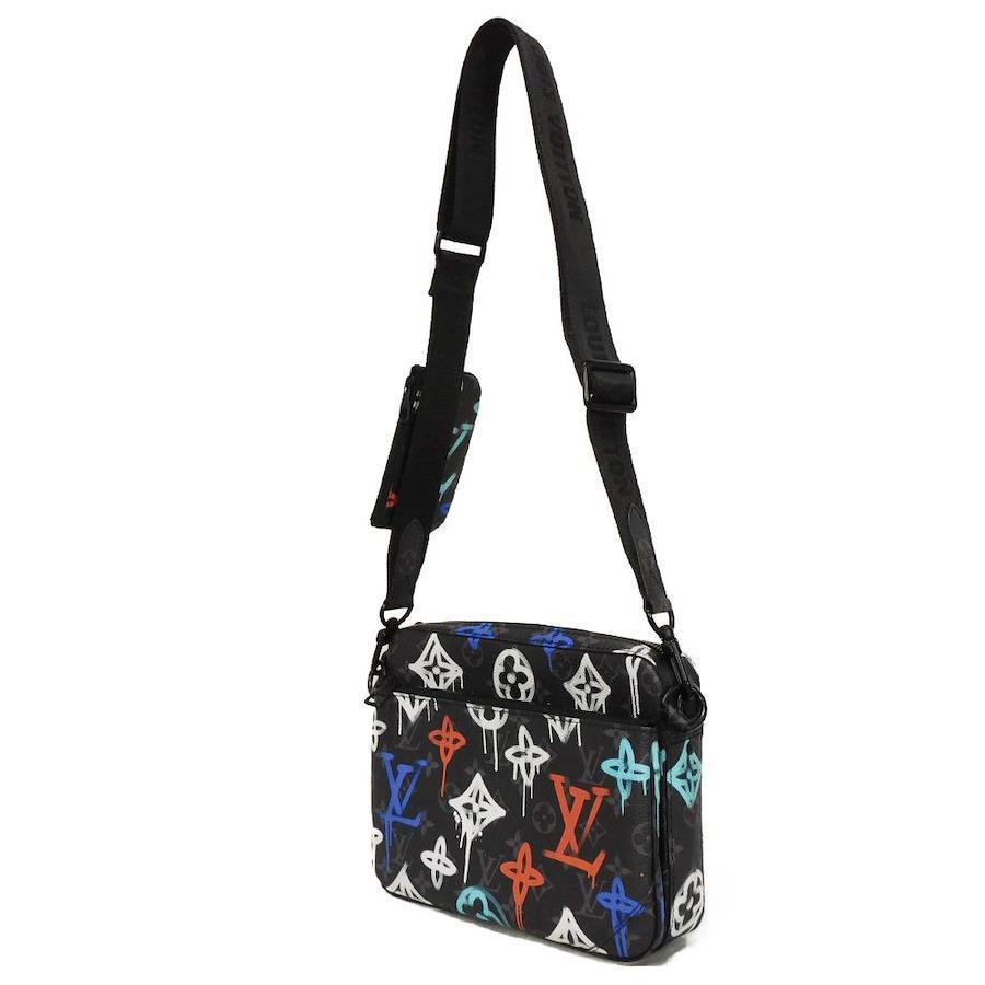 モノグラムエクリプスキャンバスにスプレー状の色彩でグラフィティ風にアレンジされた「トリオ・メッセンジャー」2023春夏プレコレクション。