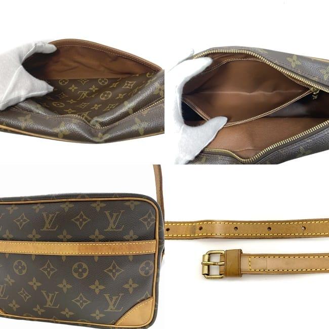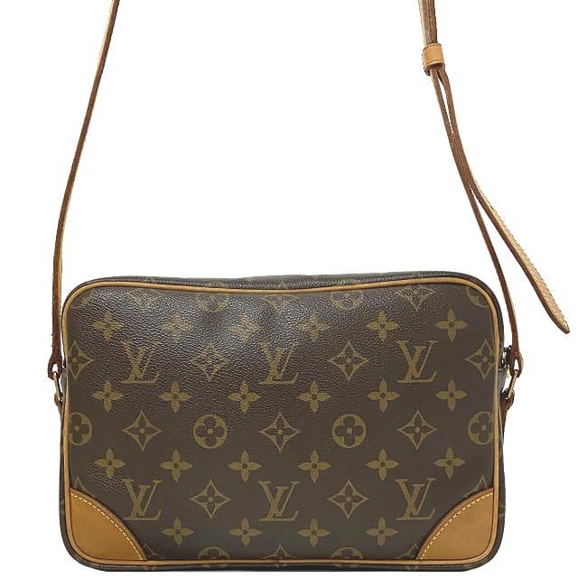 商品名:トロカデロ27ブランド名:ルイヴィトン/LOUISVUITTON商品ランク:ABランク素材:モノグラムキャンバスヌメ革サイズ:(約)w:26cm×h:17cm×d:6.5cmショルダー紐:117cm~135cm型番・品番:M51274シリアル・Ref:MB1024カラー:ブラウンベージュゴールドモノグラム仕様:外:オープンポケット×1内:ファスナーポケット×1付属品:なし詳細説明:ヌメ革部分ヤケによる変色や薄汚れ有、ショルダーストラップ付け根と長さ調節穴部分にひび割れ、底部の角に擦れ、内側に薄汚れやペン跡、金具に傷や変色有、使用感はありますがまだまだお使いいただけるお品物です。コメント:モノグラムのショルダーバッグといえば”トロカデロ”という程昔から定番人気のアイテムです。シンプルな作りで飽きの来ないデザインなので長くご愛用いただけます。管理ナンバー:ec-17667no.0730567230718