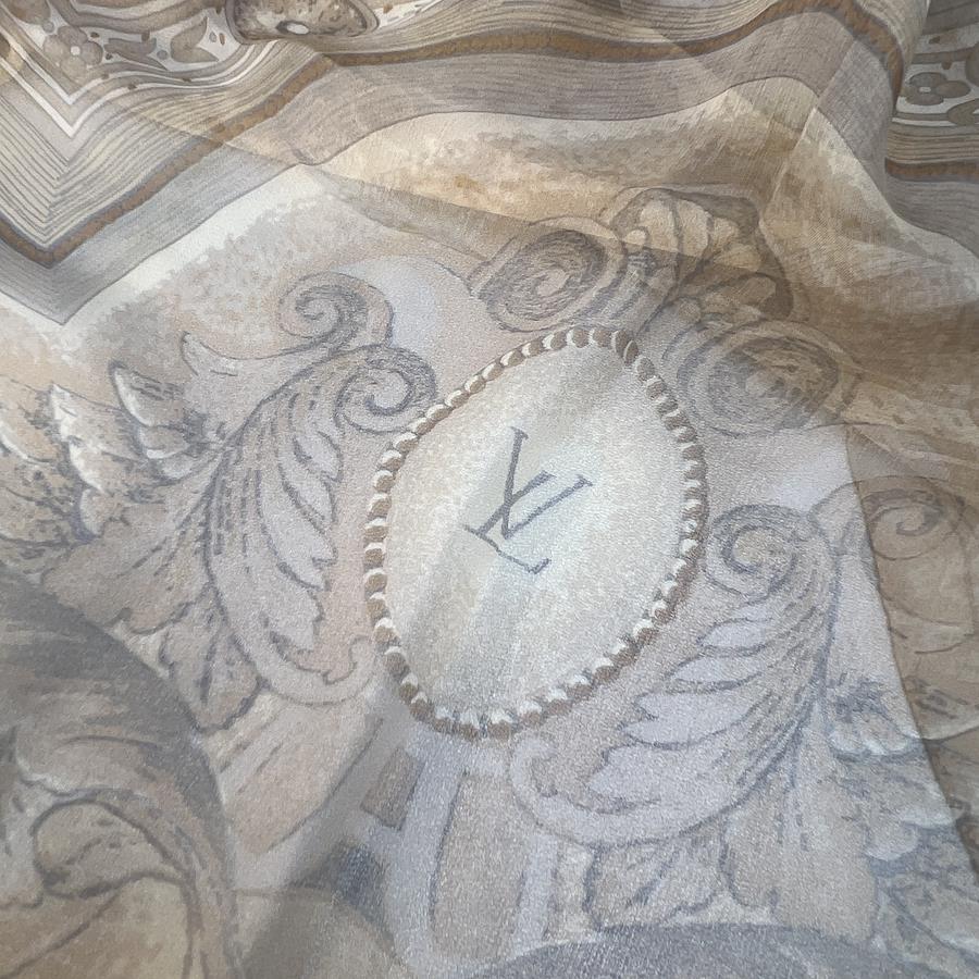 【アイテム】良品 LOUIS VUITTON ルイヴィトン タグ付き シルク スカーフ ベージュ A-9925