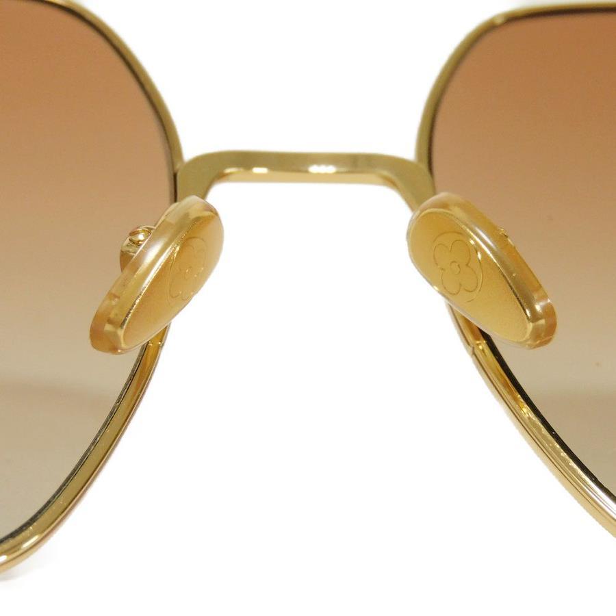 オーバーサイズなシェイプとテンプルにはルイヴィトンのLVロゴとフラワーが揺れる「LV チャーム・スクエア」サングラスです。