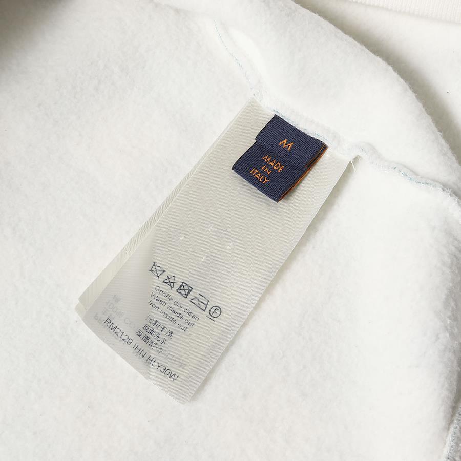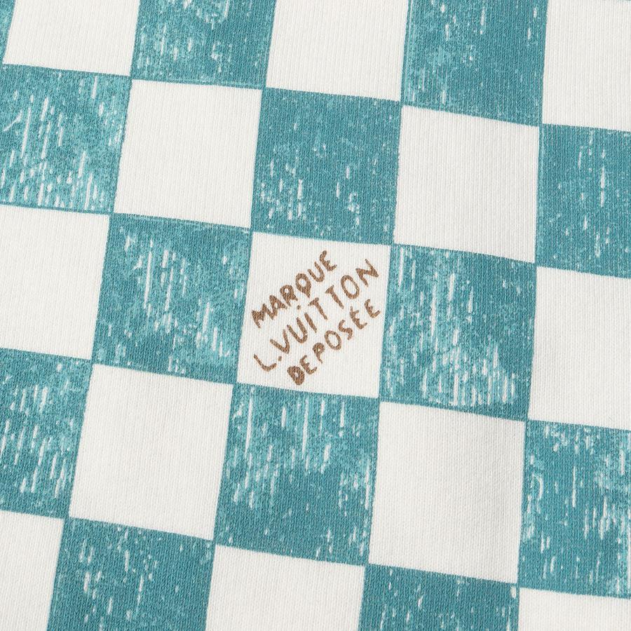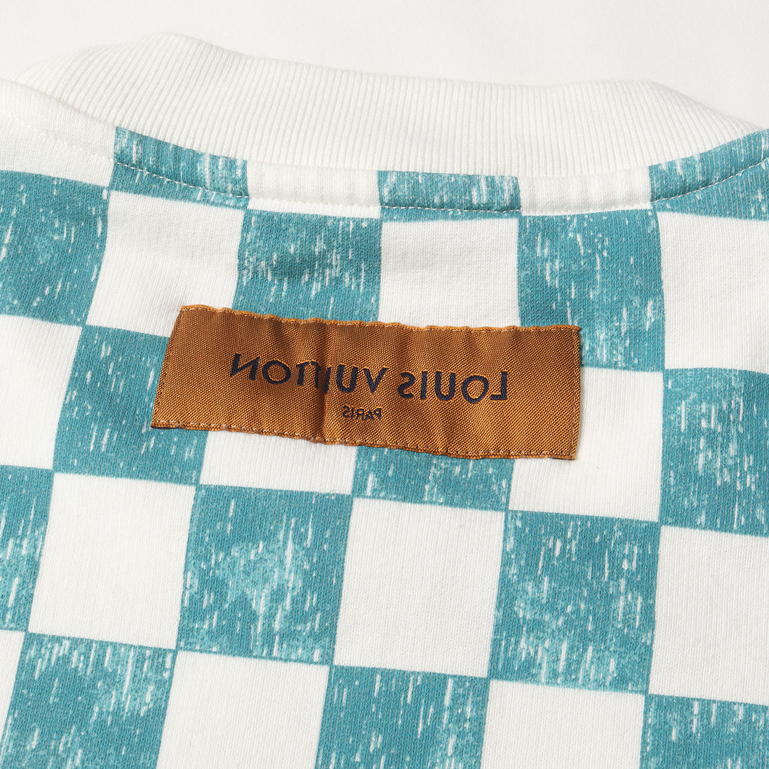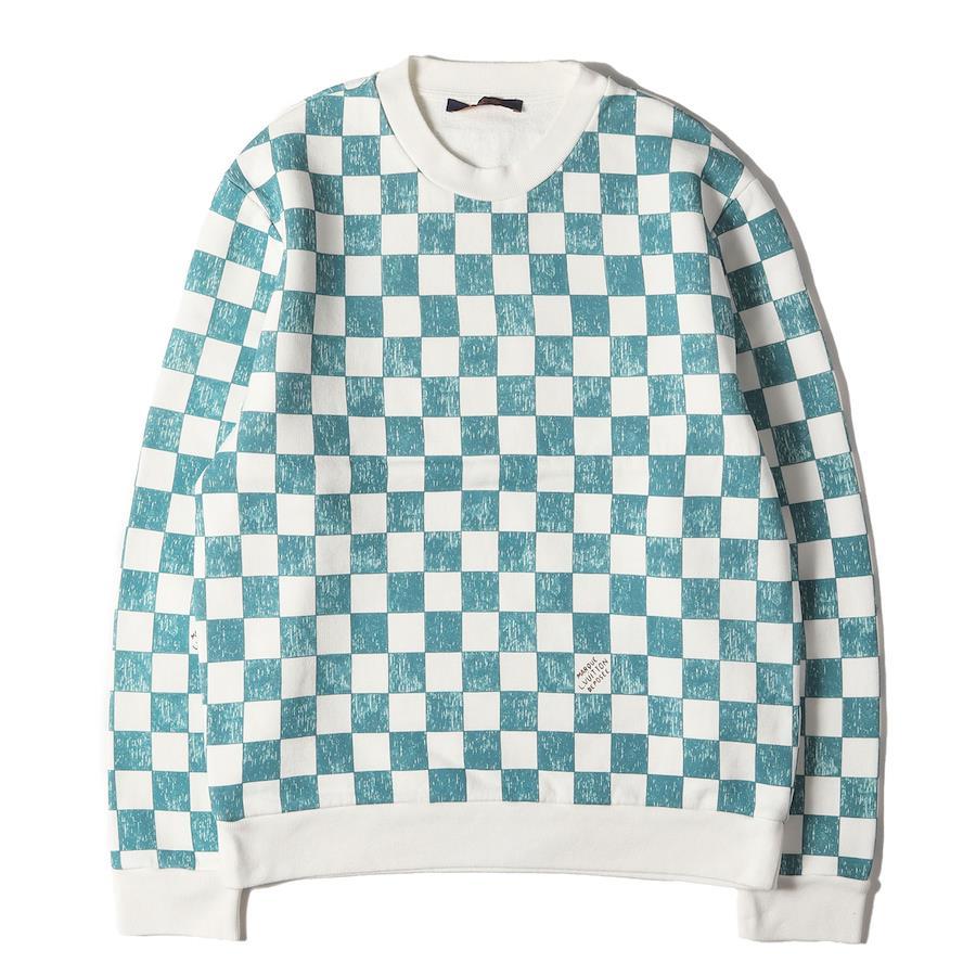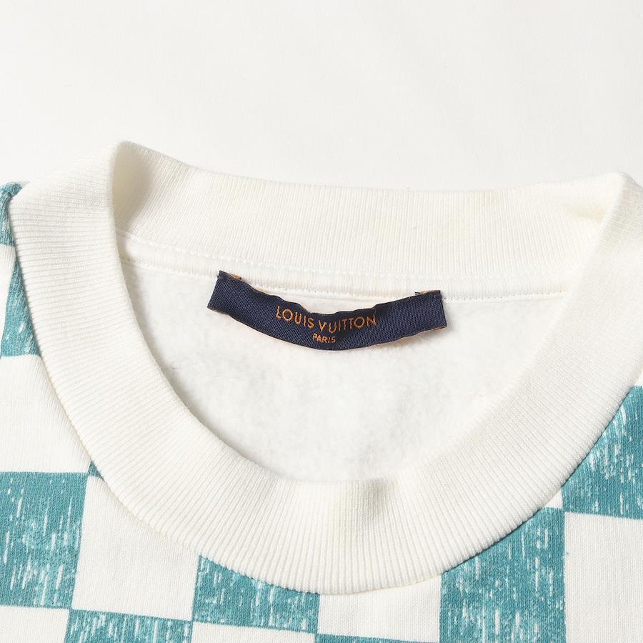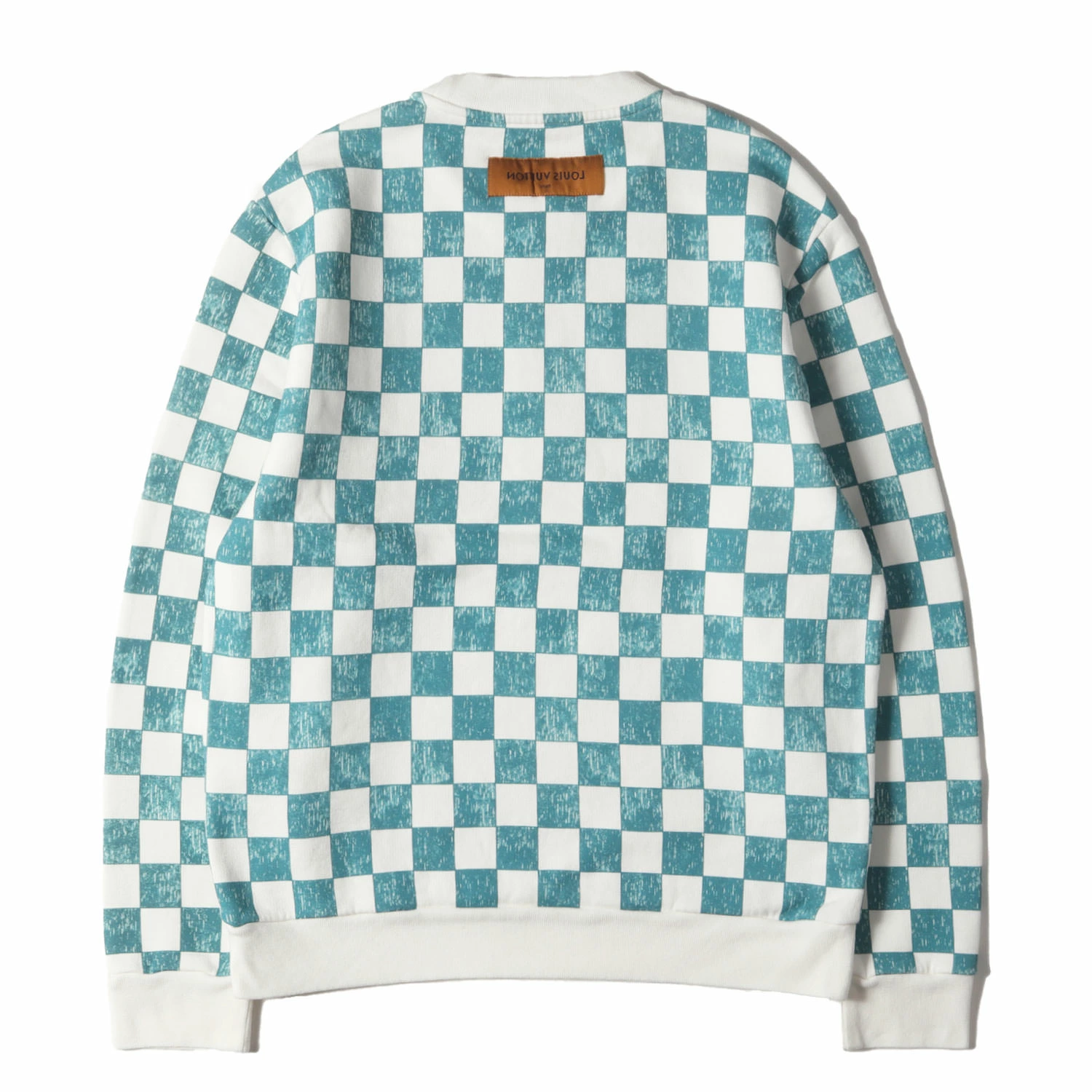 LOUIS VUITTON Sweatshirt, Size M, 2021 Autumn/Winter Damier Printed Sweatshirt (RM2129 IHN HLY30W), Fleece-Lined, White/Green, Made in Italy, Men's Top, Pre-owned, K4617