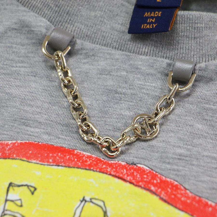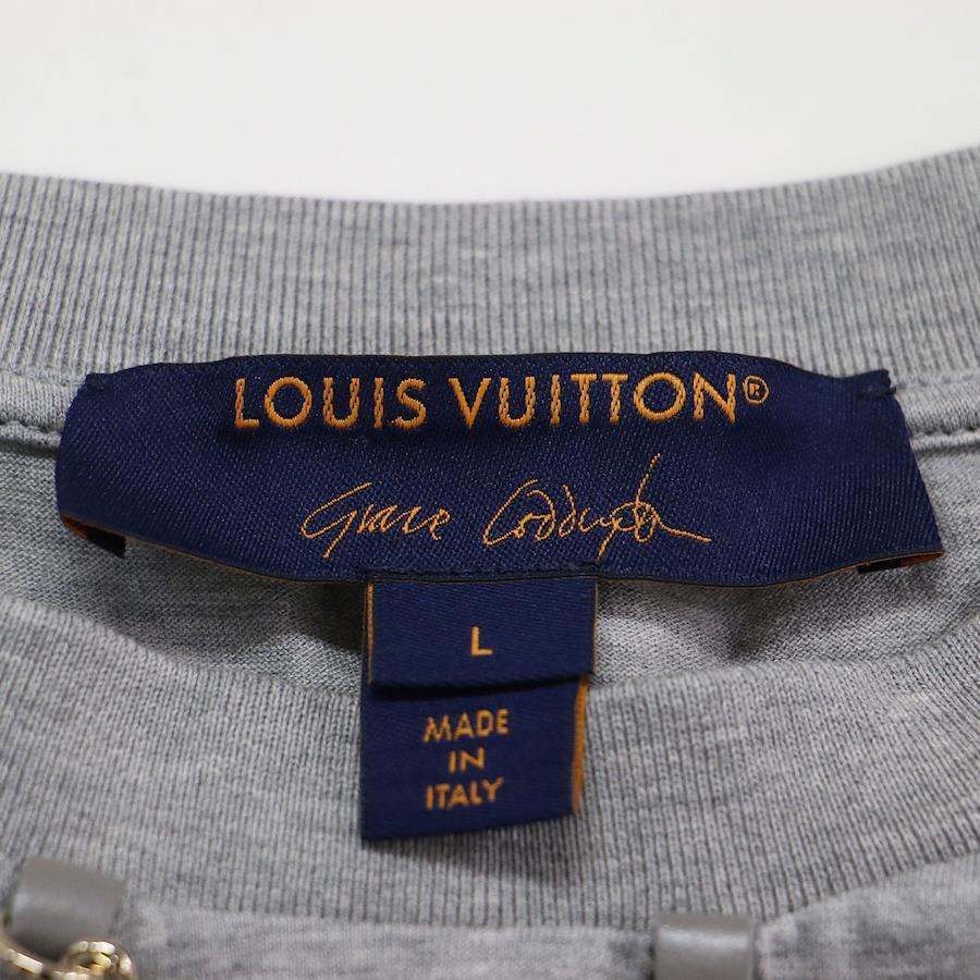LOUIS VUITTON T-shirt, Gray, Size: L | Spring/Summer 2026 Cat Stamp T-shirt 1AHYSK | Half-sleeve, Crew neck, Cat print, Chain detail, Cotton | Top, Cut and sew, Short sleeves | Made in Italy 【Women's】【Used】【Excellent condition】【K4755】