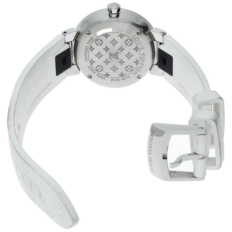 商品説明:ルイ・ヴィトンのフラッグシップウォッチ「タンブール」。上品でシンプルなデザインでどんなスタイルにも合わせられます。ベゼルにはダイヤモンドが施された高級感溢れる1本です。
