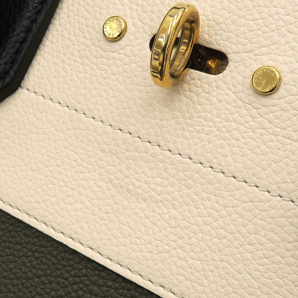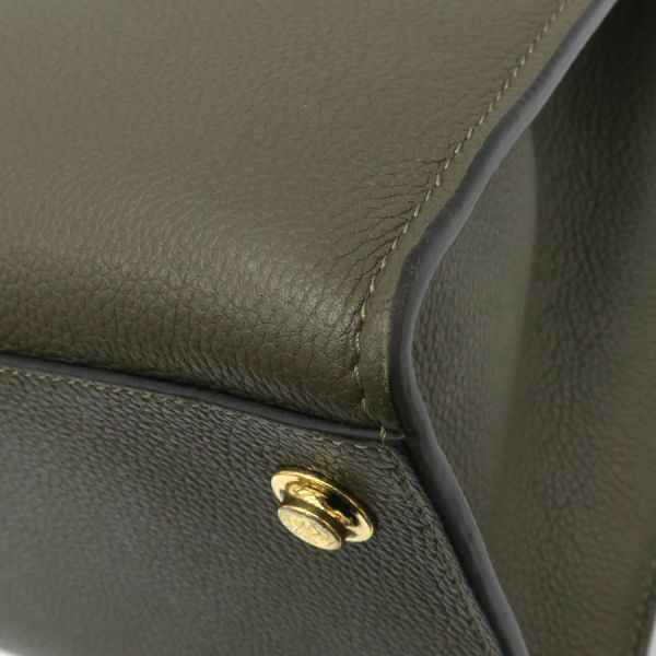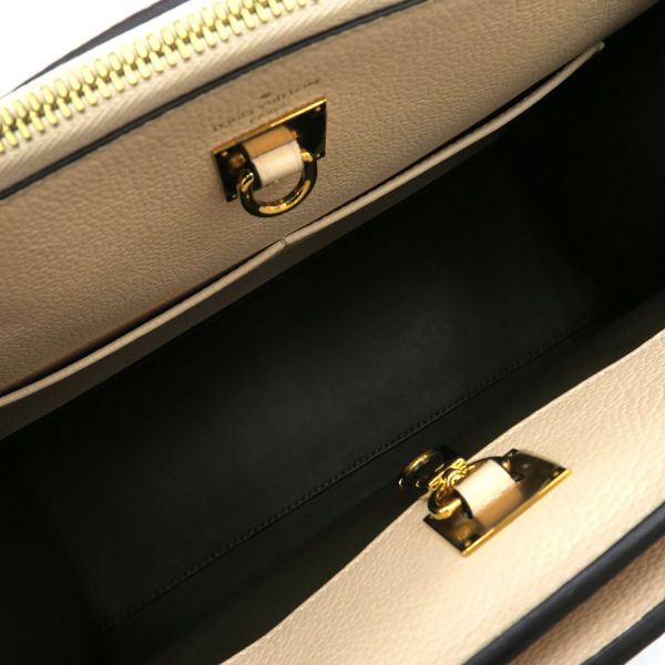 ルイヴィトン トリヨン・シティスティーマーMMカチッとしたフォルムの為、フォーマルなシーンで活躍してくれるバッグ『トリヨン・シティスティマーMM』の入荷となります。ライトベージュ×カーキのバイカラーとなっており、パドロックを含むゴールド調金具との組み合わせが、シックでオシャレな印象です。、程よいサイズ感となり、お財布やスマートフォンといった小物類に加え、ポーチ類なども収納できる万能なサイズ感となり普段使いにピッタリです◎短めのショルダーストラップが付属していますので肩掛けも可能です。状態はAランクとなっており、本体の型崩れ、表面のスレ感、角スレ、ハンドルのコバ押し跡、フチ部分のスレ、金具部分の小傷、内部のスレ感、僅かな傷、香水臭を感じます。使用感は僅かにありますが大きく目立つ程ではない印象です。是非いかがでしょうか?付属:ショルダーストラップ(金具込み約71cm調節不可)、ネームタグ、パドロック、鍵2本