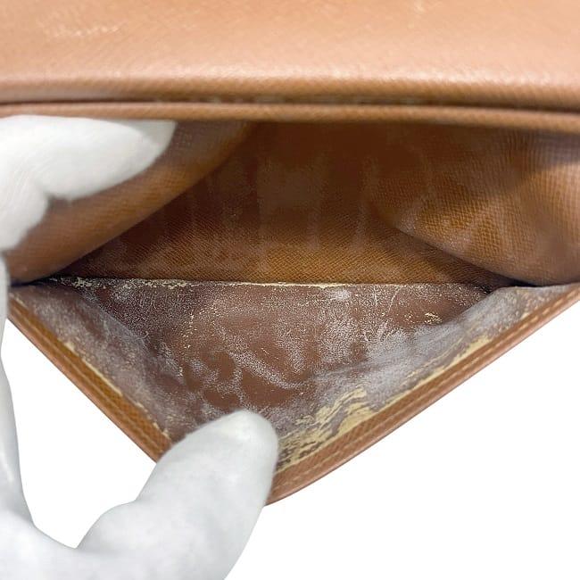 詳細説明:角に多少の擦れ、金具に傷、内側表面に傷や擦れ、小銭入れ内に汚れ、札入やオープンポケット内劣化によるベタつき剥がれ有、使用感はございますがまだまだお使いいただけるお品物です。
