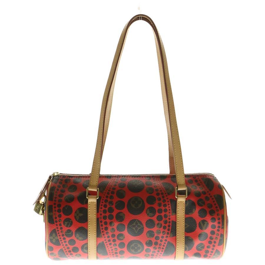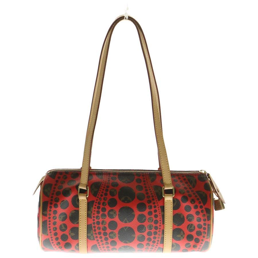 [モデル]×草間彌生 モノグラム パンプキンドット パピヨン ショルダー バッグ レッド/ブラウン M40689 MB2182