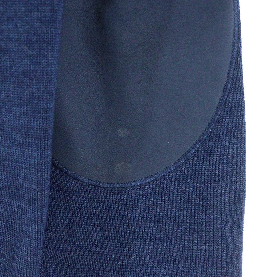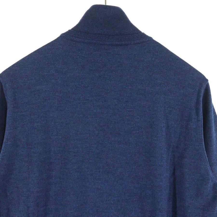 [モデル]Zip Up Knit Jacket ジップアップニットジャケット ロゴ刺繍エルボーパッチニットセーター HAN53E ネイビー
