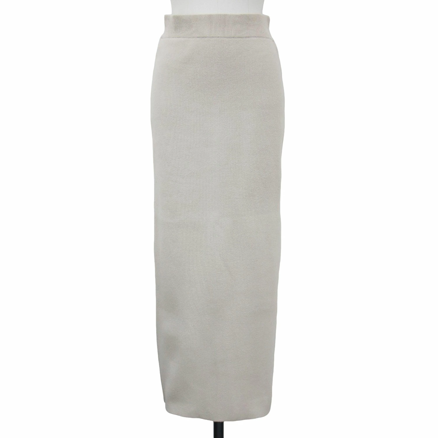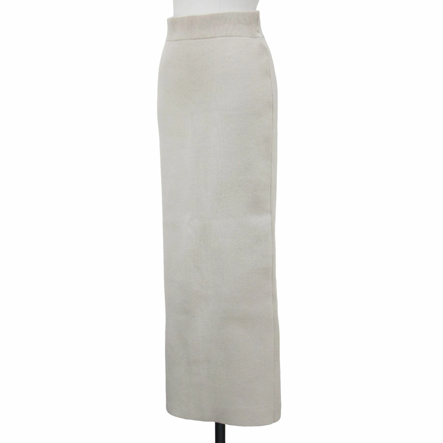 Loungedress Lounge Dress Skirt, Beige, Size: Free / Sweat-Like Knit Skirt / Tight Skirt, Long Length, Elastic Waist, Slit, Cotton / Women's Bottoms [Pre-owned] [K4614]