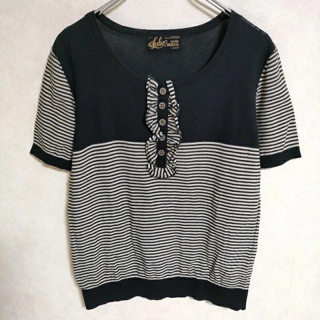 | アイテム | ニット ボーダー フロントフリル 半袖 コットン |