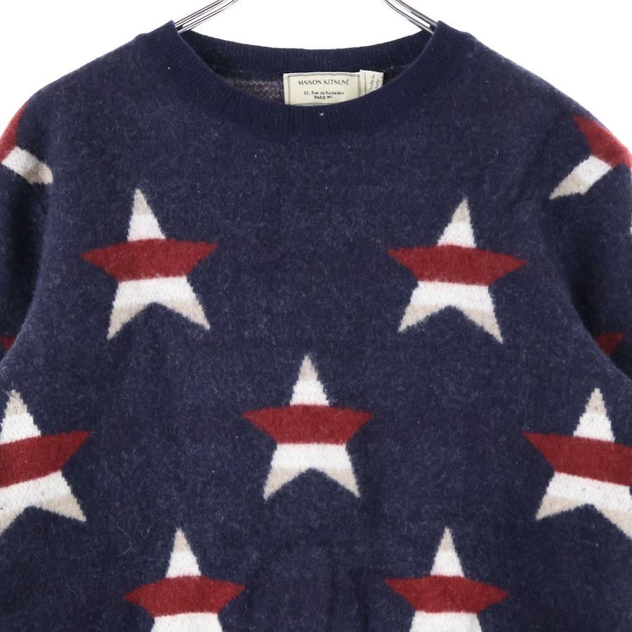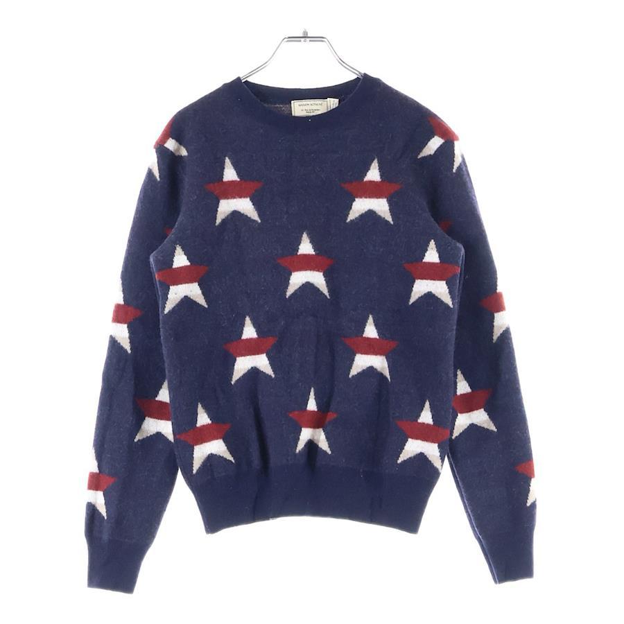 [モデル]17AW イタリア製 ボーダースター クルーネック カシミア混 ウールニット セーター ネイビー FW17M616