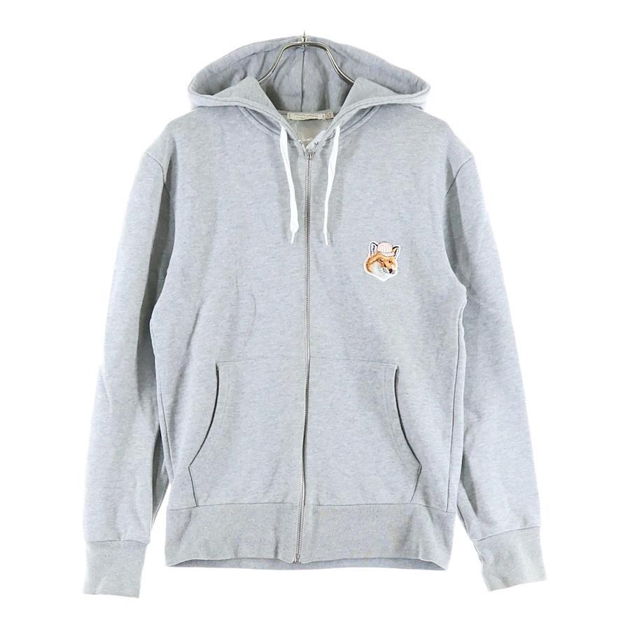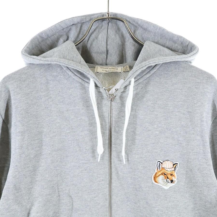 [モデル]キツネパッチ ドローストリング ジップアップフーディ スウェットパーカー レディース グレー