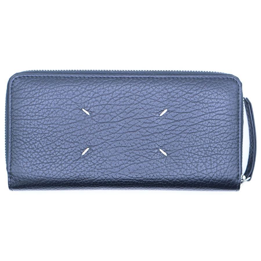 [モデル]4ステッチ グレインレザー ジップアラウンド ウォレット 長財布 ブラック S56UI0110