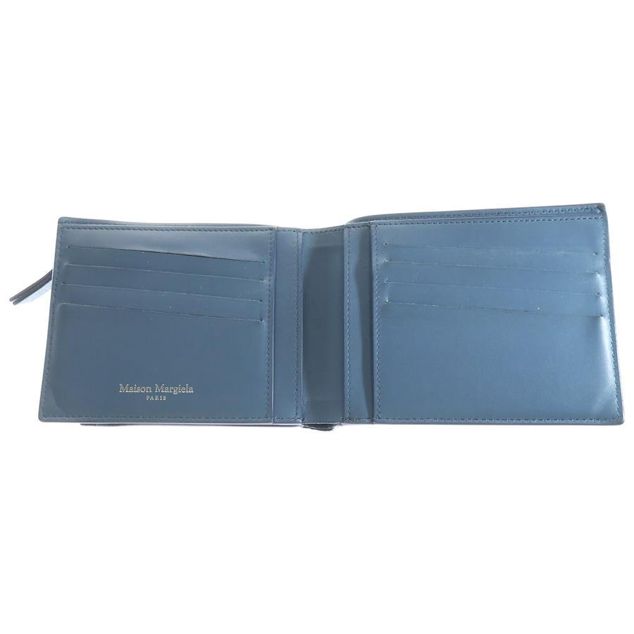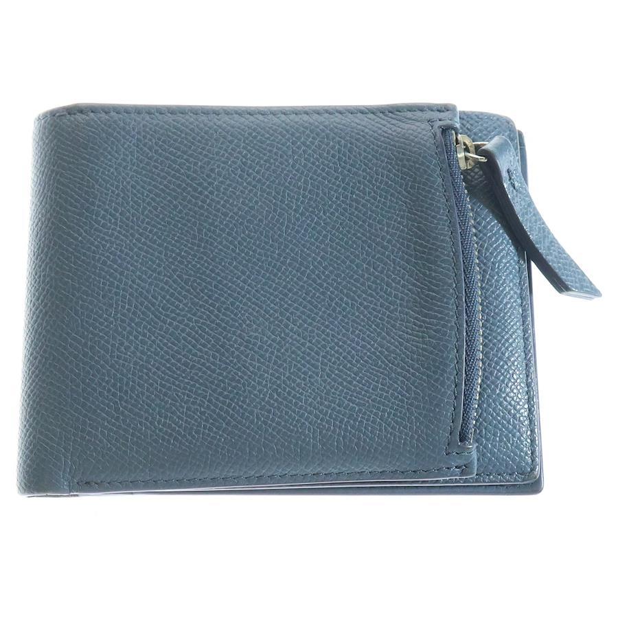 [モデル]二つ折り 4ステッチ レザーウォレット 財布 ブルー SA1UI0019