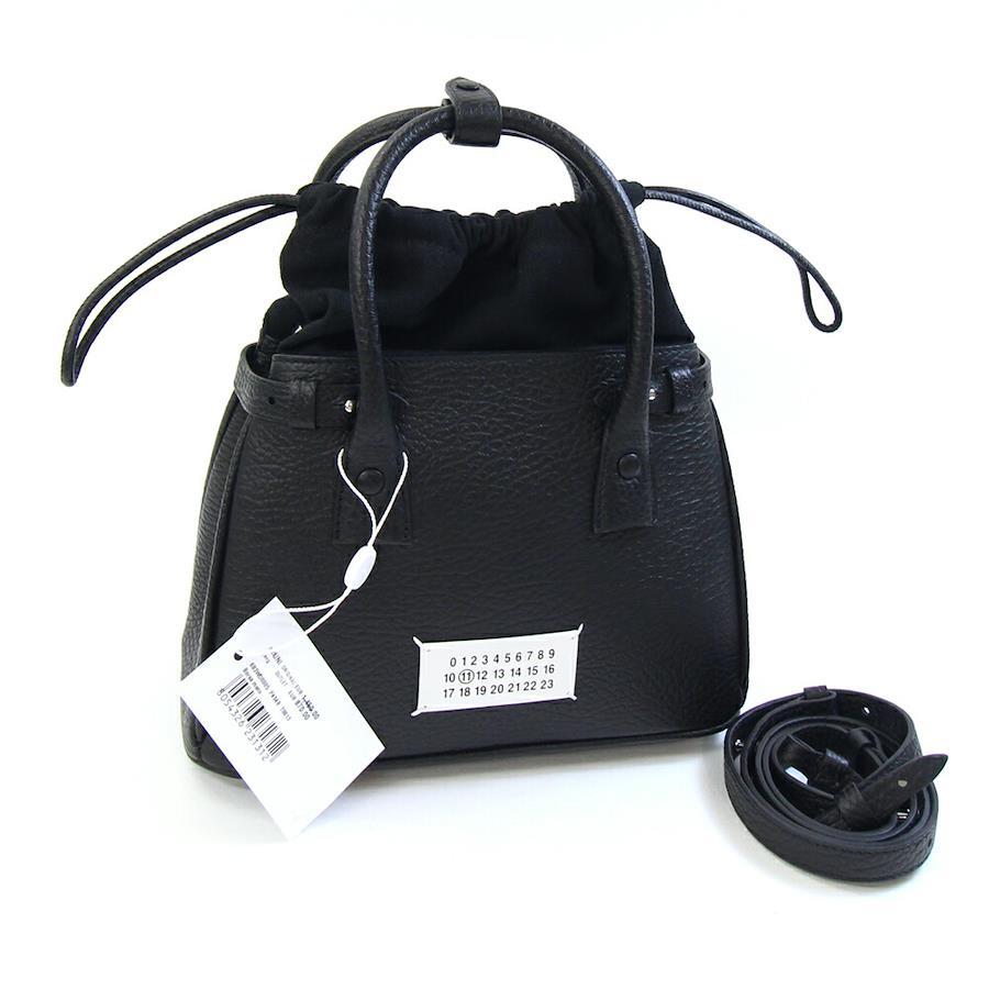 メゾンマルジェラ2WAYハンドバッグ5ACドローストリングバッグSB3WD0005ブラックレザーキャンバス新品未使用ショルダーバッグ4ステッチミニバッグレディースMaisonMargiela