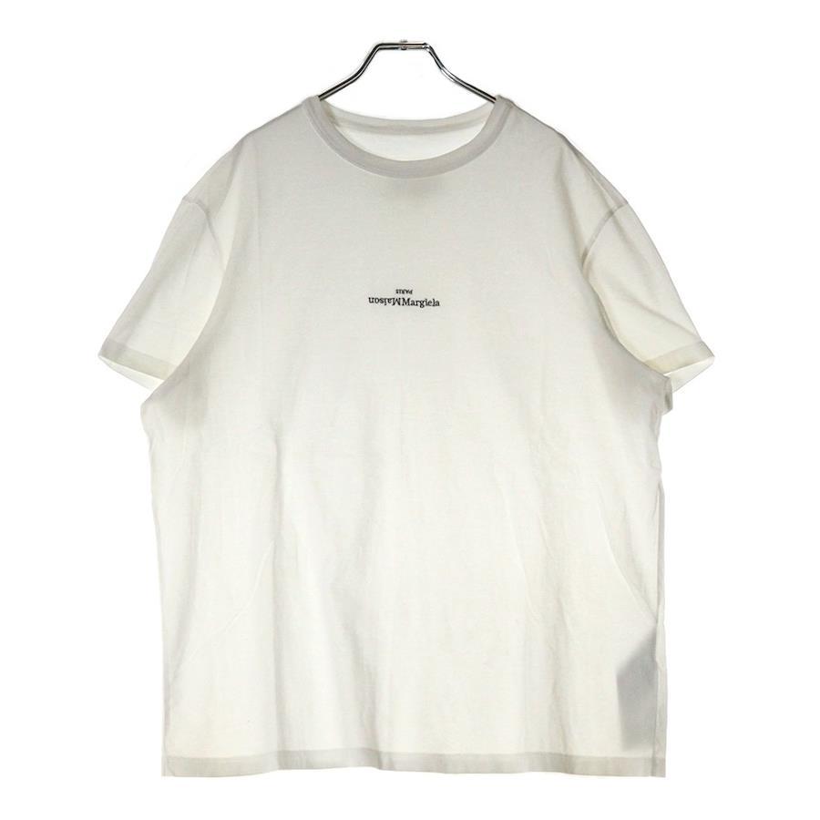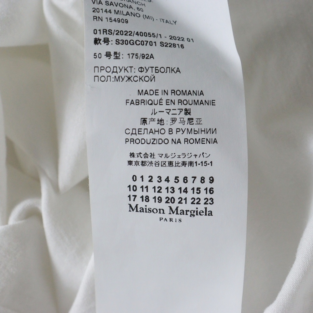 Maison Margiela 2022 Spring/Summer Reverse Logo Upside Down Embroidery Crew Neck Short Sleeve T-Shirt, White, Size 50, S30GC0701