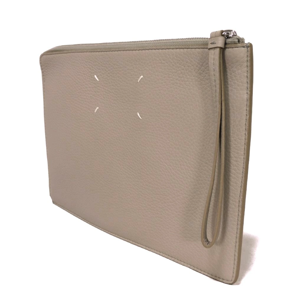 | 型押しゴートレザーにメゾンマルジェラの4ステッチがあしらわれた「ジップ ポーチ」ハンドルストラップ付きクラッチバッグです。 |
