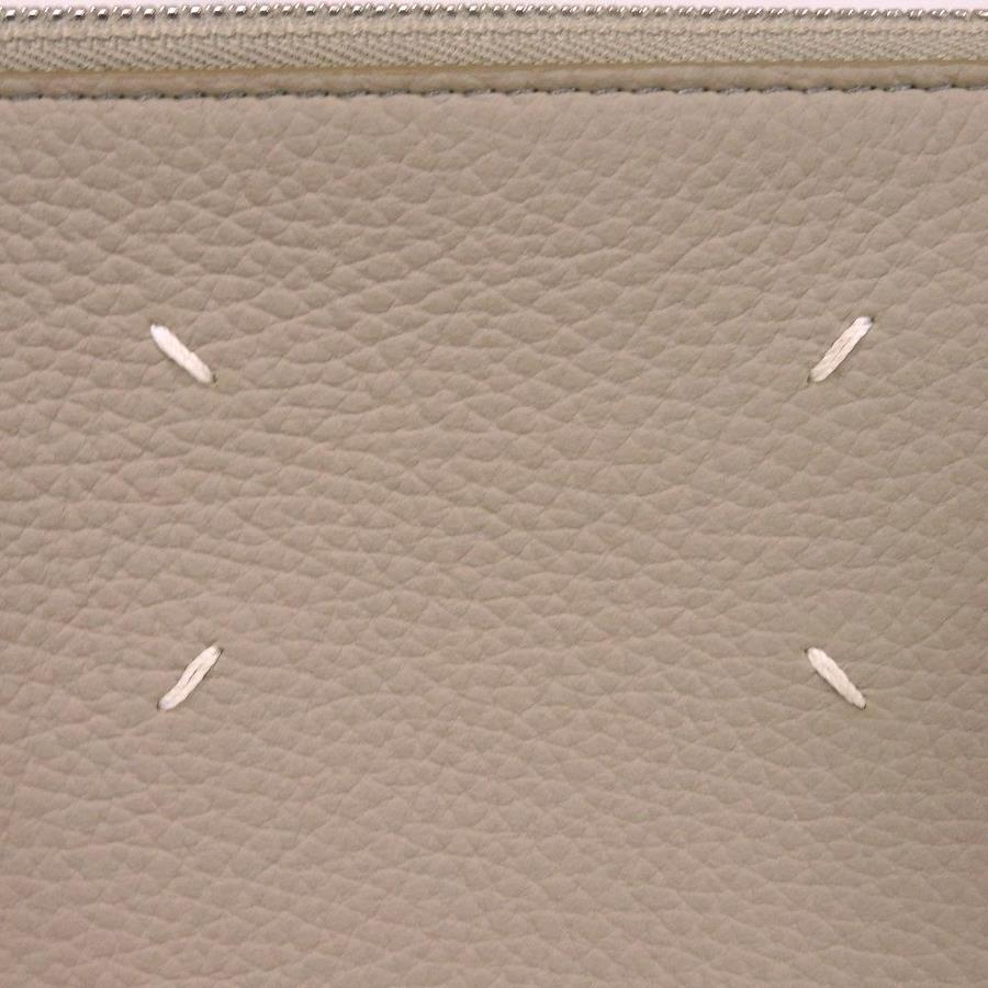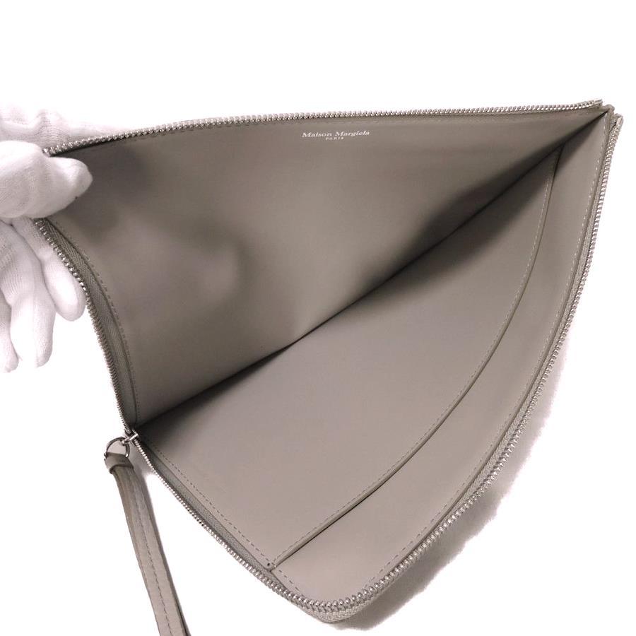 型押しゴートレザーにメゾンマルジェラの4ステッチがあしらわれた「ジップ ポーチ」ハンドルストラップ付きクラッチバッグです。