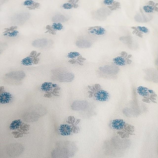mame Flower Embroidery Tunic with Small Flower Embroidery MM21PS-SH709 Tunic Blouse in White and Blue with a Black Mame Embroidery Pattern [Used] 4-0113M
