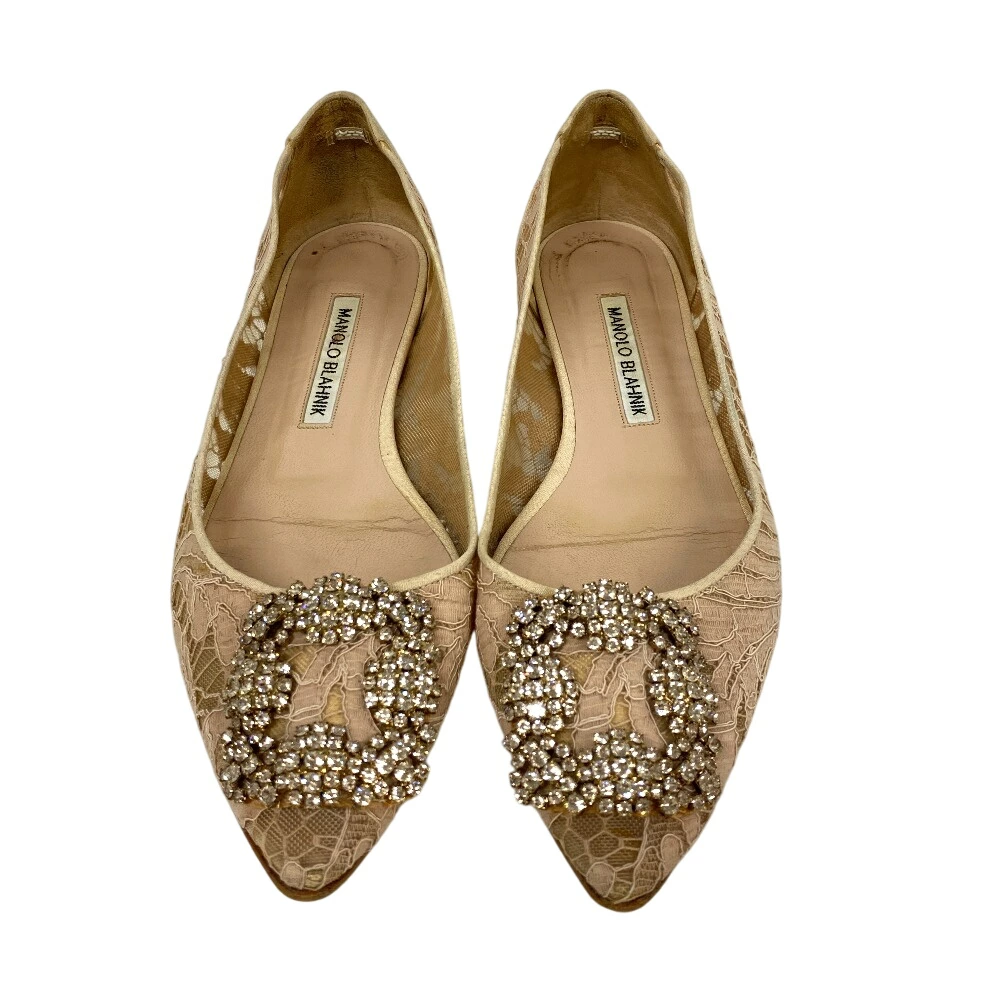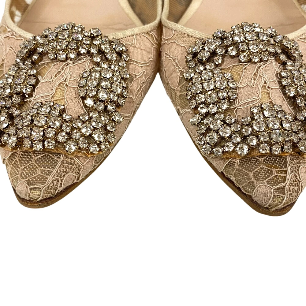 | 商品名 | MANOLO BLAHNIK/マノロブラニク ハンギシ ビジュー フラットパンプス レース ラインストーン パンプス ベージュ レディース |