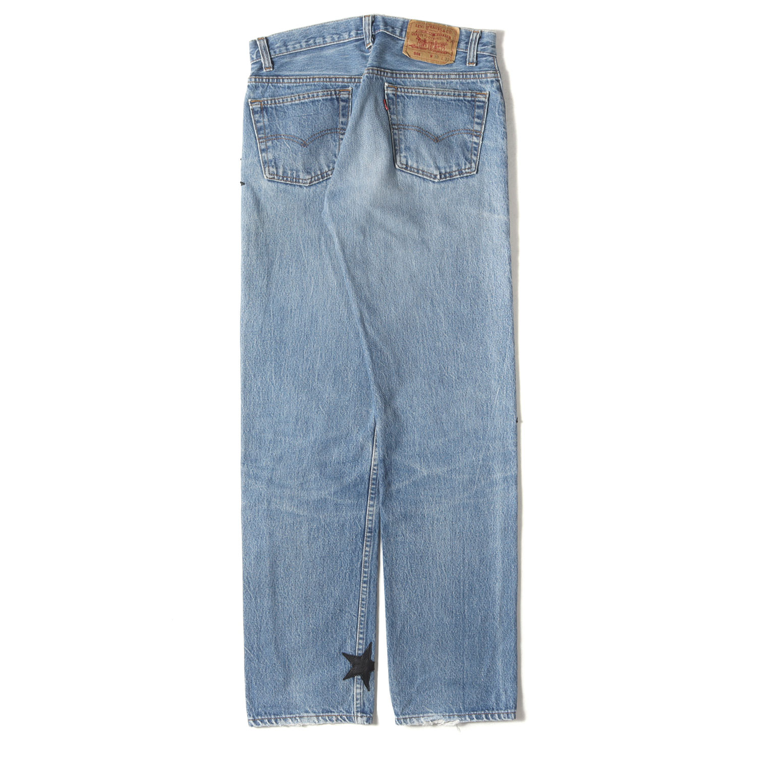 | 商品説明 | 90年代の“Levi's 501 USA製”を使用したリメイクアイテムです。随所にレザー製スターパッチをあしらったカスタムモデルのボタンフライデニムパンツになります。 |