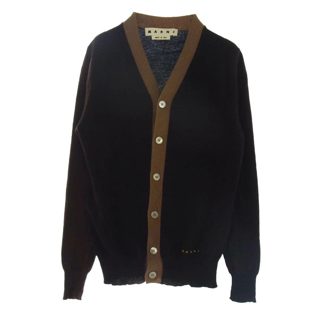 MARNI 19AW CDMG0022Q0 Logo Embroidered Two-Tone Cardigan, Brown, Size 44, Men's [Used]