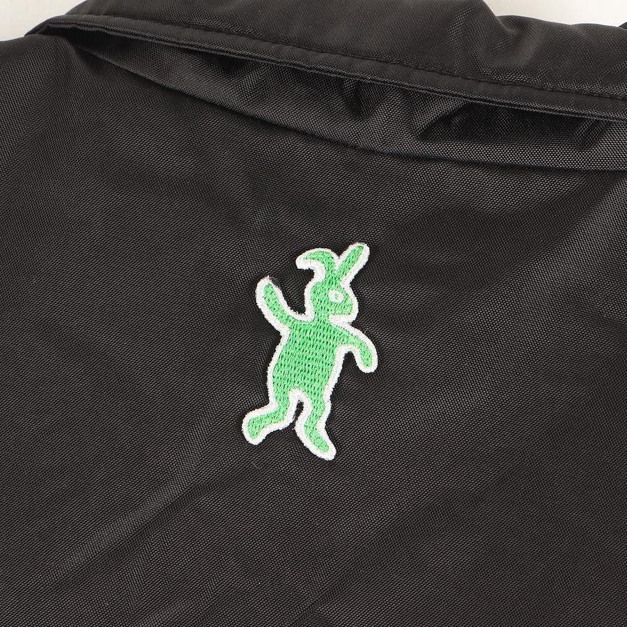 商品説明ナイロン生地を使用し、スナップボタンで仕上げたコーチジャケットです。背中首元にあしらったうさぎワッペンがアクセントになります。