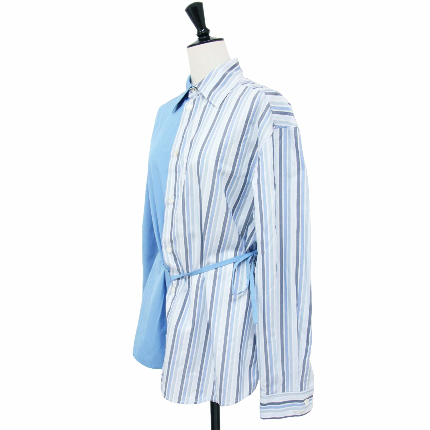 | 商品説明 | ・サイドスリット入り ・サイドカットオフデザイン ・左右着丈差あり ・ウエストリボンベルト付き ・カフにブランドロゴのハンドステッチ入り |