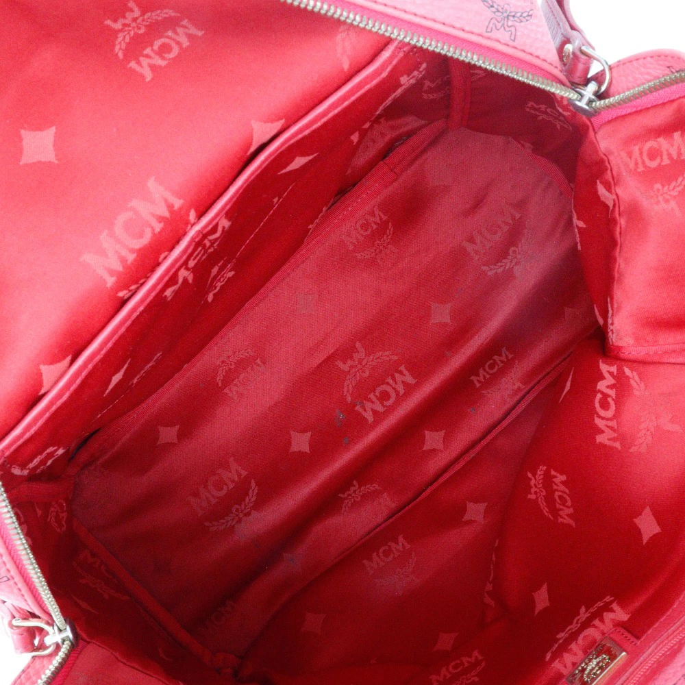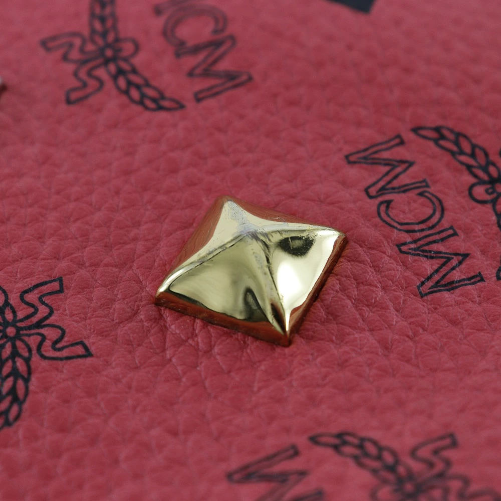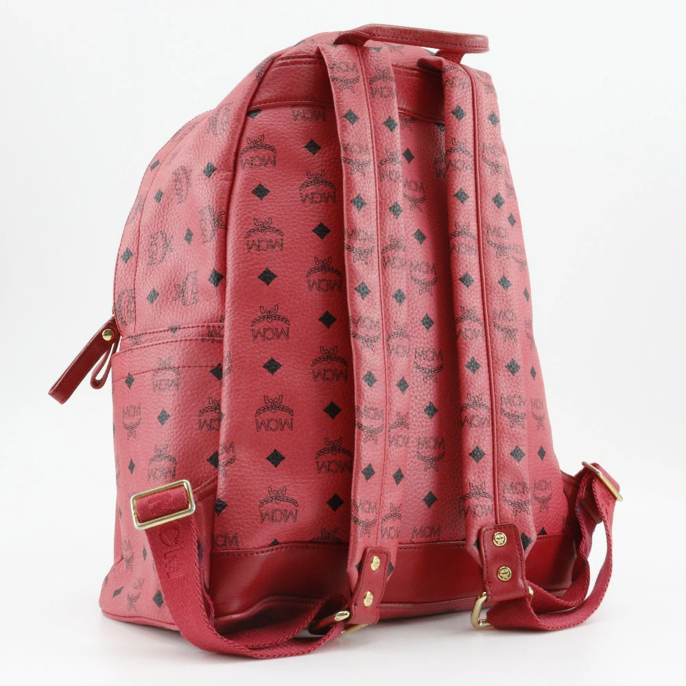 MCM Logogram Backpack/Daypack with Studs (MWK1 SVE02) in Pink PVC. This 2-way backpack can be carried by hand or shoulder. A4 size, double zipper. Pre-owned.