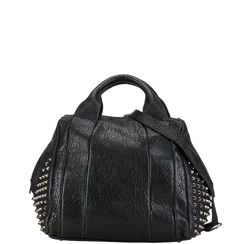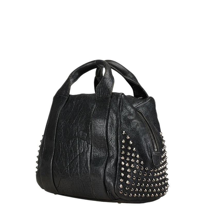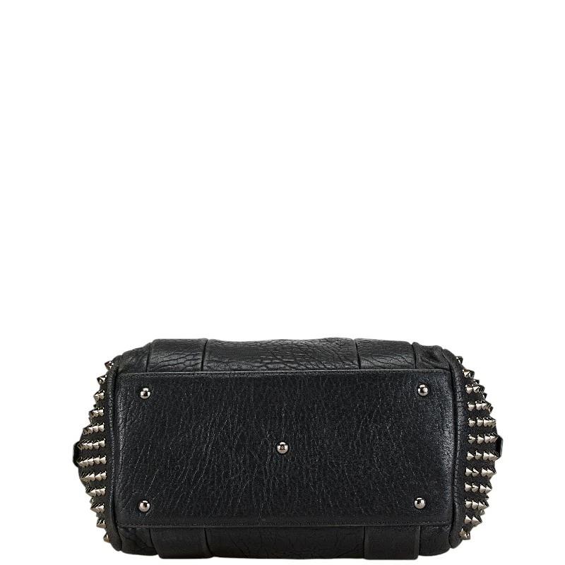 MCM Studded Handbag/Shoulder Bag, 2-Way, Black Leather, Women's, Pre-Owned