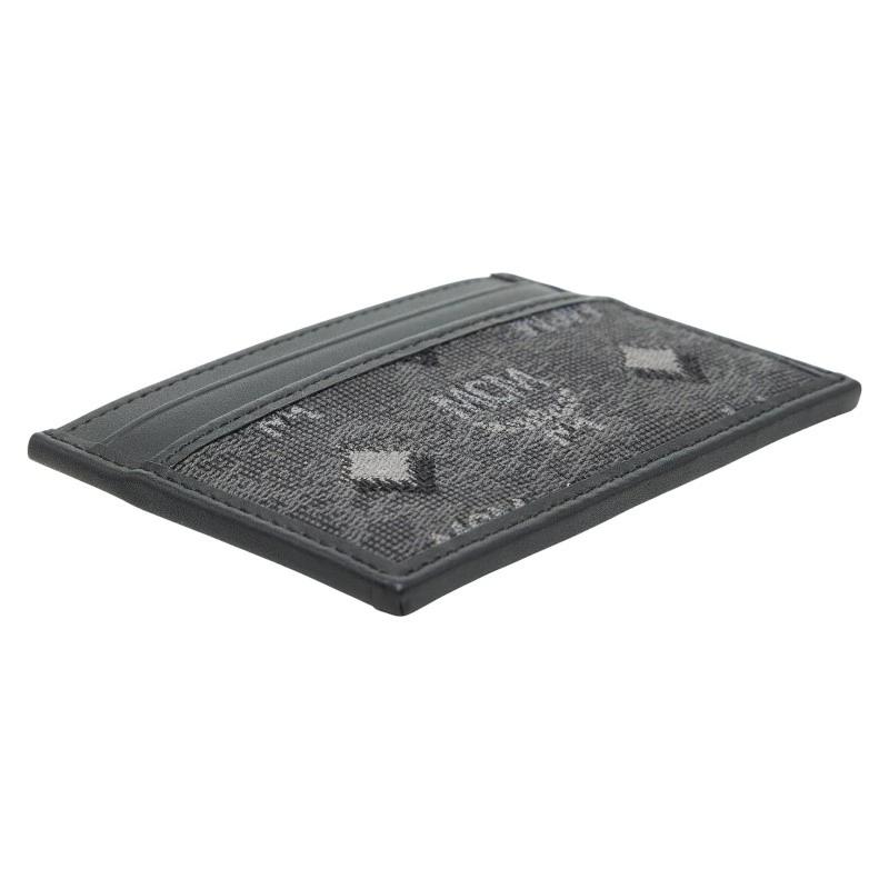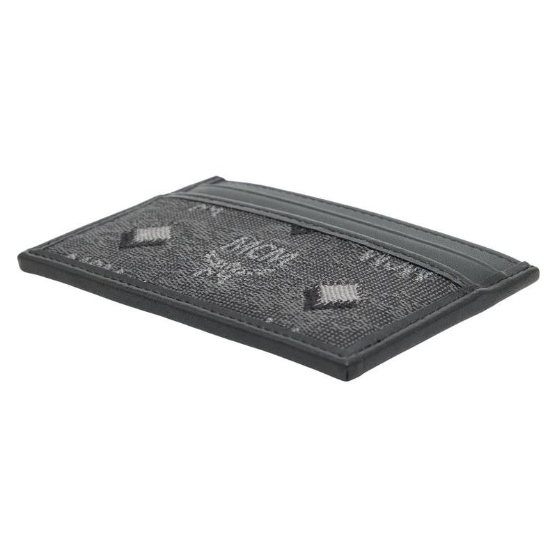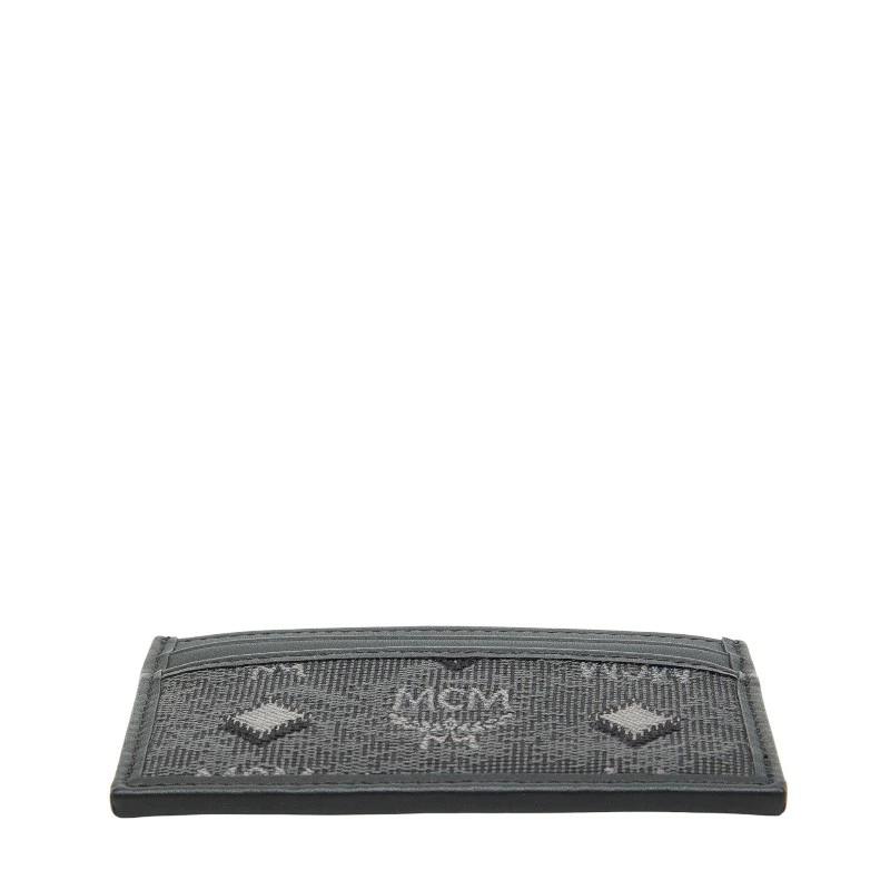 MCM Visetos Monogram Card Case/Pass Case in Black and Gray Canvas and Leather, Women's, Pre-owned