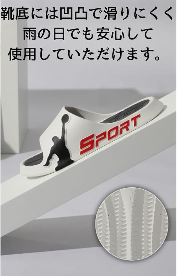 EVA素材は水に強く軽量で、柔らかく弾力があり、深い溝が入っているため滑りにくく、子供からお年寄りの方まで安心して着用できます。