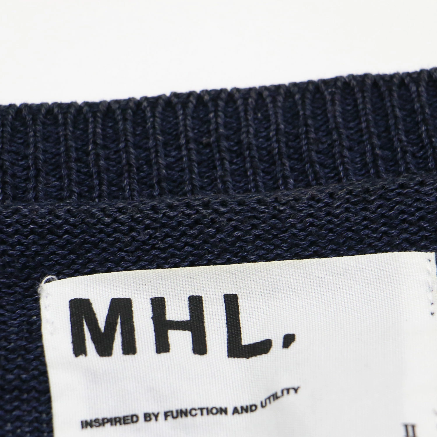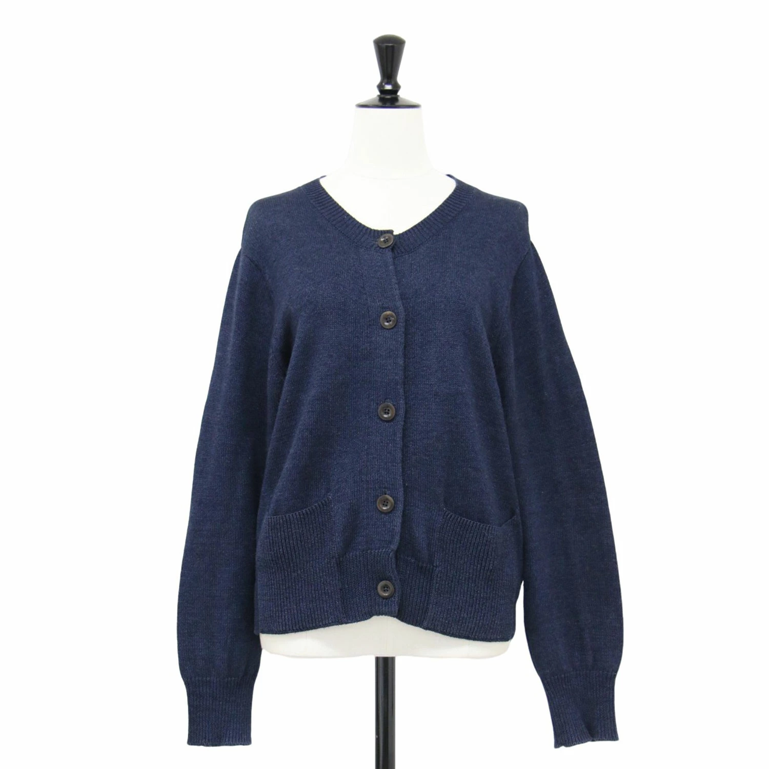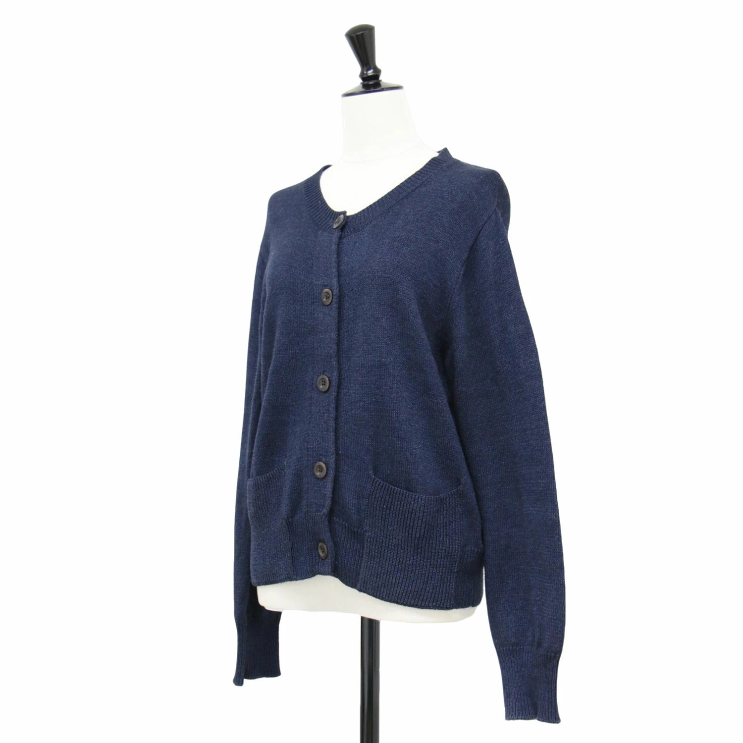 MHL. MARGARET HOWELL Navy Cardigan, Size 2 (M), Cotton Crew Neck Cardigan, Faded Cotton Knit, Long Sleeve, Women's, Pre-owned, K4619