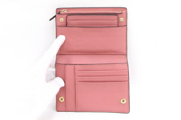 マイケルコース二つ折り財布35F8GTVD8Lピンクレザー中古コンパクトウォレット札入無しレディース女性MICHAELKORS