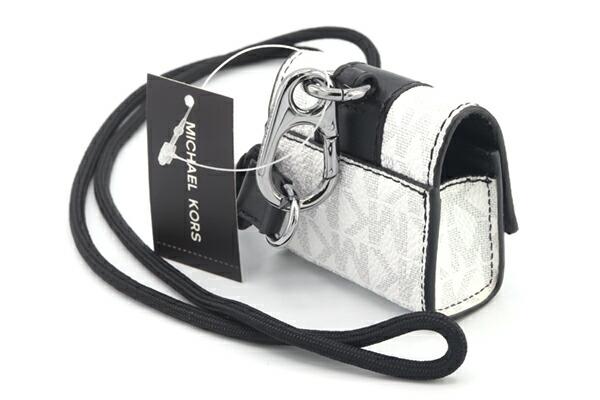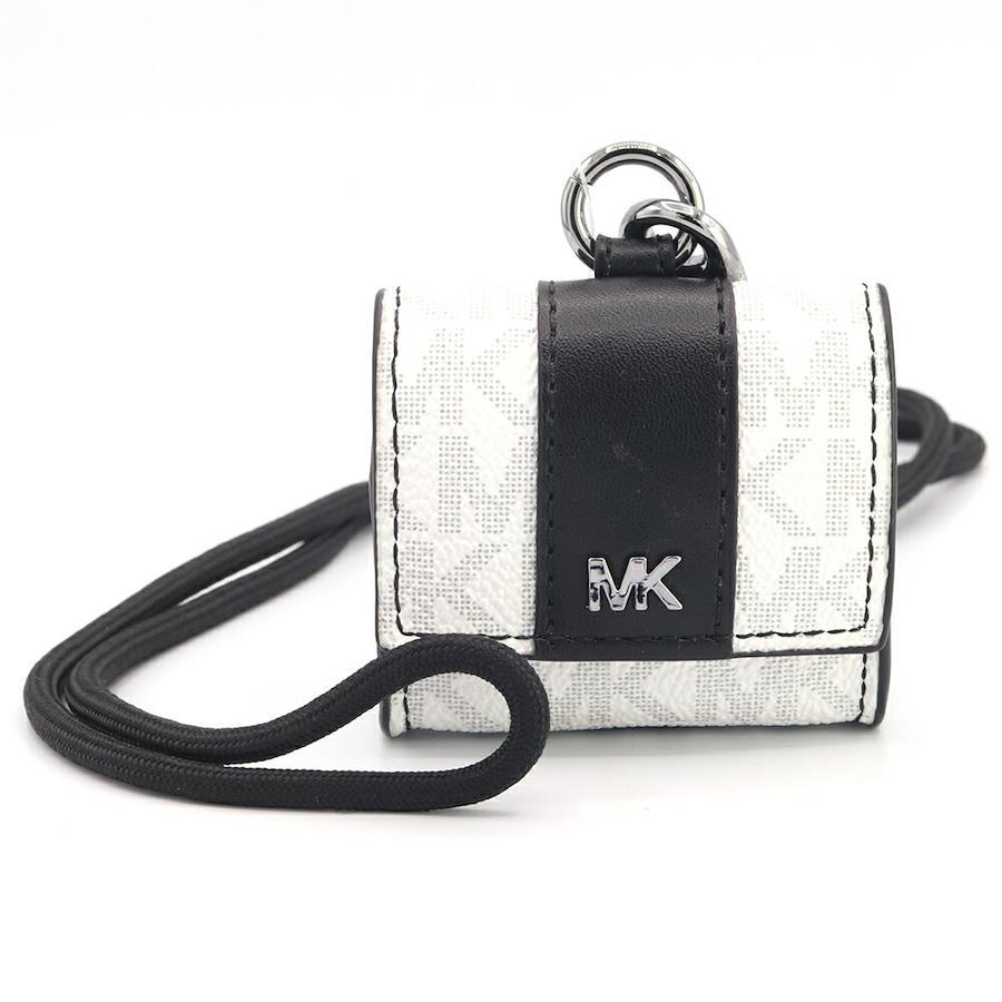 マイケルコースイヤホンケースMKシグネチャーエアーポッズプロケース36F2LGFL0BホワイトブラックPVCレザー中古ワイヤレスイヤホンネックストラップ付きロゴメンズMICHAELKORS