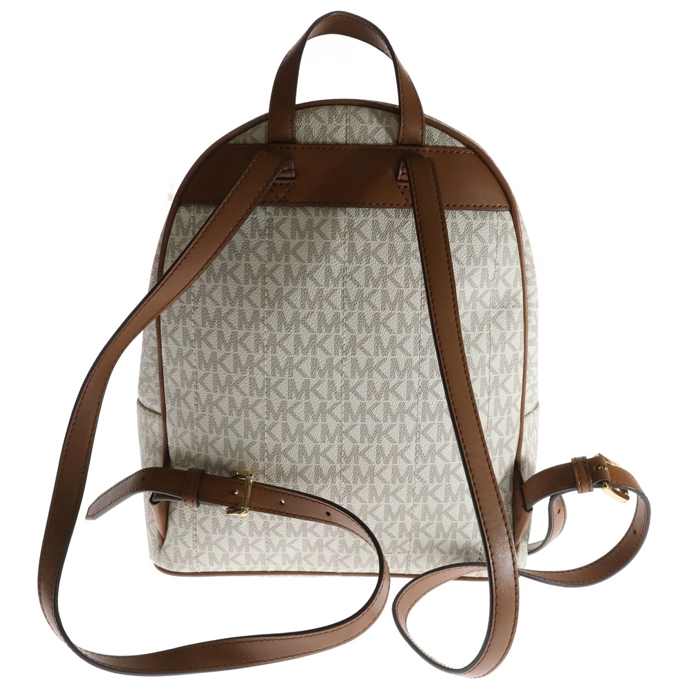 [モデル]リュック ジップポケット バックパック リュックサック ミディアム ホワイト×ブラウン ゴールド金具 レザー 35T0GY9B2B